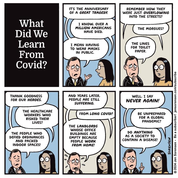 Frankly, I feel similarly. I sometimes ponder how much worse things would be if another pandemic arrived now. The growing number of anti-science and uber-privileged “personal rights” folks—riled up by powerful politicians on the right—would simply not take the precautions needed to protect themselves and, more importantly, those around them.
