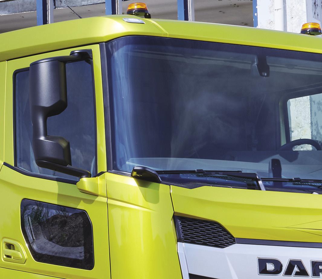 The DAF XD and XDC share the large windscreen and large side windows with other New Generation models but with a cab mounting position 17 cm lower than the New XF and XFC and the ‘Vision Dashboard’, which is contoured towards the windscreen, as standard. A Kerb View Window is available as an option which, in combination with the foldable codriver seat, offers an unobstructed view of pedestrians and cyclists on the near-side. This all adds up to exceptional direct vision and means the XD and XDC can achieve up to a five star rating in London’s Direct Vision Standard, dependent on specification.