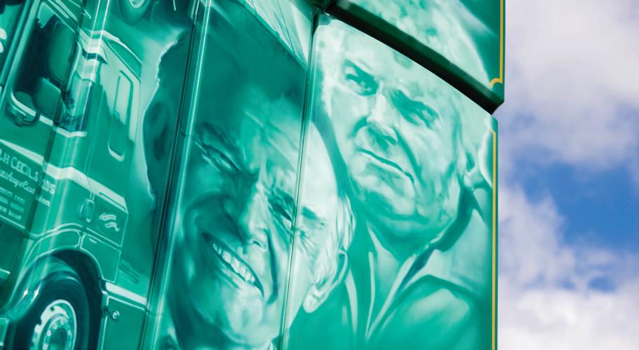 Many of the vehicles used in the company’s history are depicted within the artwork but more importantly, so are the family. Founder Bertram Harold Cecil, and his four sons Gelbert, Roy, John and Richard. The next generation namely Geoff (Paul’s dad) can be found at the end of the chassis on the infill.