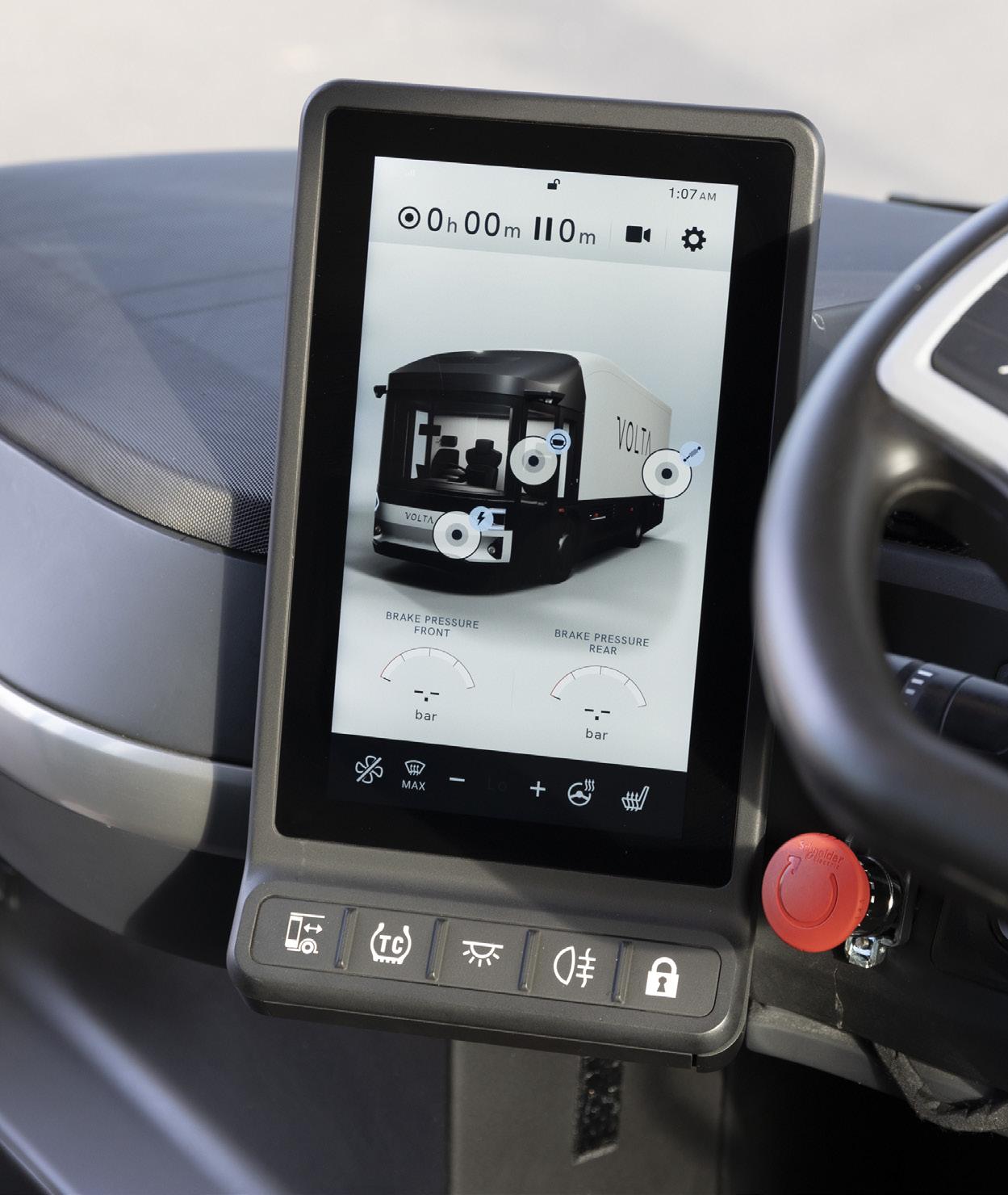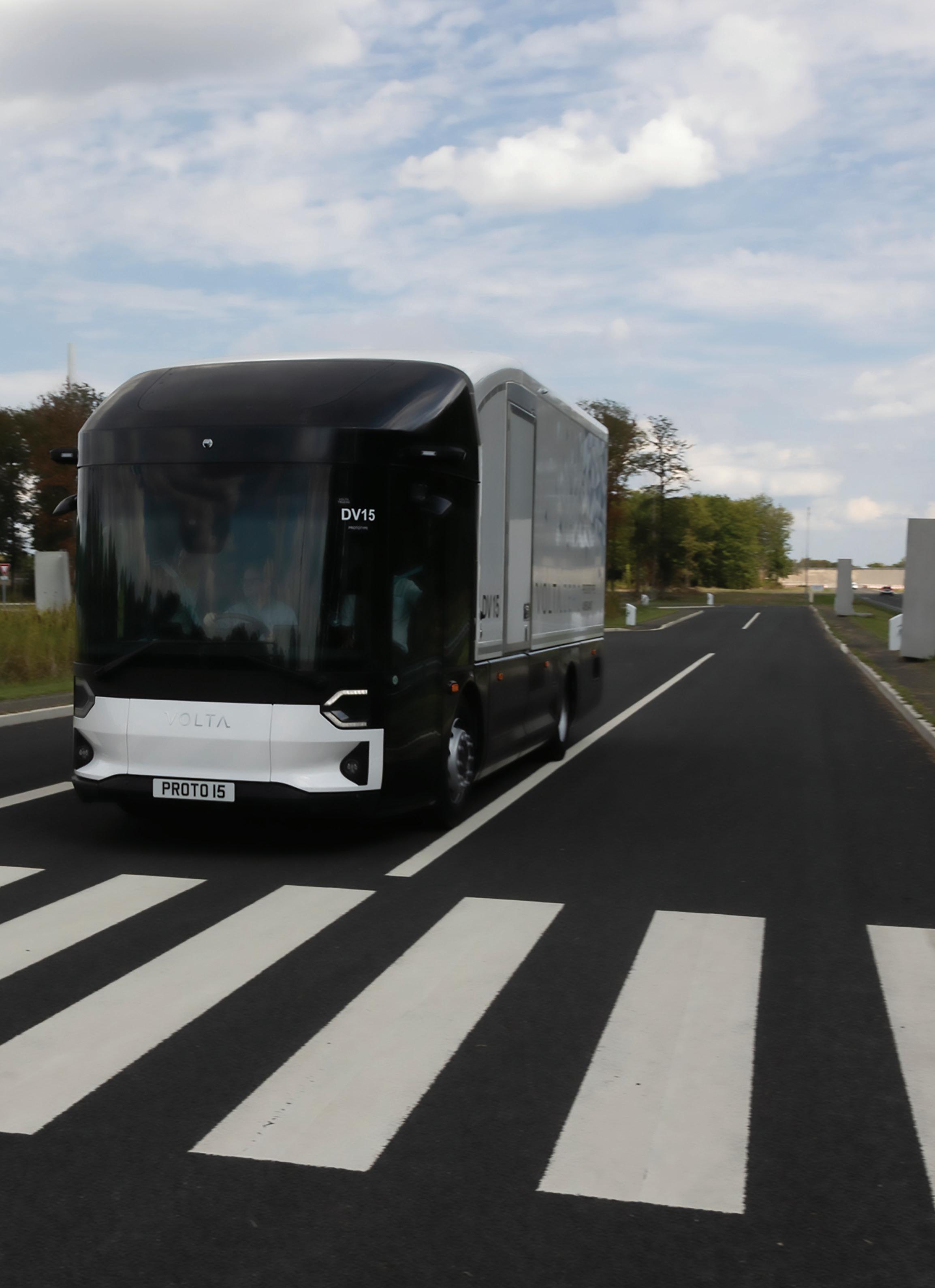With a clear target of achieving a five-star Direct Vision Standard (DVS) rating in London, Volta has built a unique cab concept with oversize windows, large glass panels mounted in busstyle sliding doors, and a low central driving position. All this combines to give the driver 220 degrees of eye-level direct visibility.