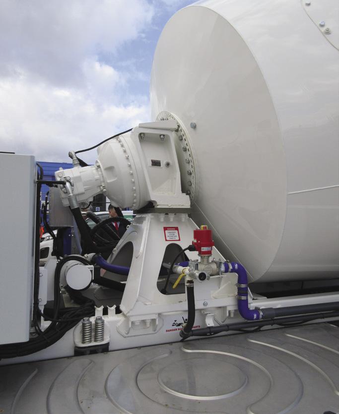 An enhanced restraint system has been installed to retain the drum if there is a danger of it breaking away from the chassis and landing the truck on its side. It would take 1.5g of force to dislodge it. That is significantly more than the 0.5g that has been viewed acceptable on traditional mixers and is undoubtedly good news for operational safety.