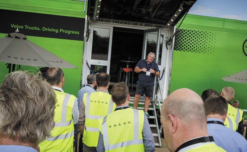 Next up was an FMX Electric rigid. Repeating the same route in reverse, this time we were focused on driving the BEV ‘properly’ – ie, not like a diesel – and this mostly involves a change in braking behaviour. Volvo’s electric trucks have a tweaked engine brake with automatic mode, and the strategy the driver needs to employ is almost backwards to that used on a conventional driveline. Instead of leaving the engine brake off and only flicking the stalk when you need to slow down, we were advised the most energy-efficient way to use it on the electric truck is to leave it in auto mode for the duration of the drive. This way, the driver knows that whenever they lift off the power, the truck slows using the engine brake and captures/ regenerates the maximum amount of energy back into the cells. Effectively this means you can drive the vehicle using just one pedal, with service brakes called on only rarely.