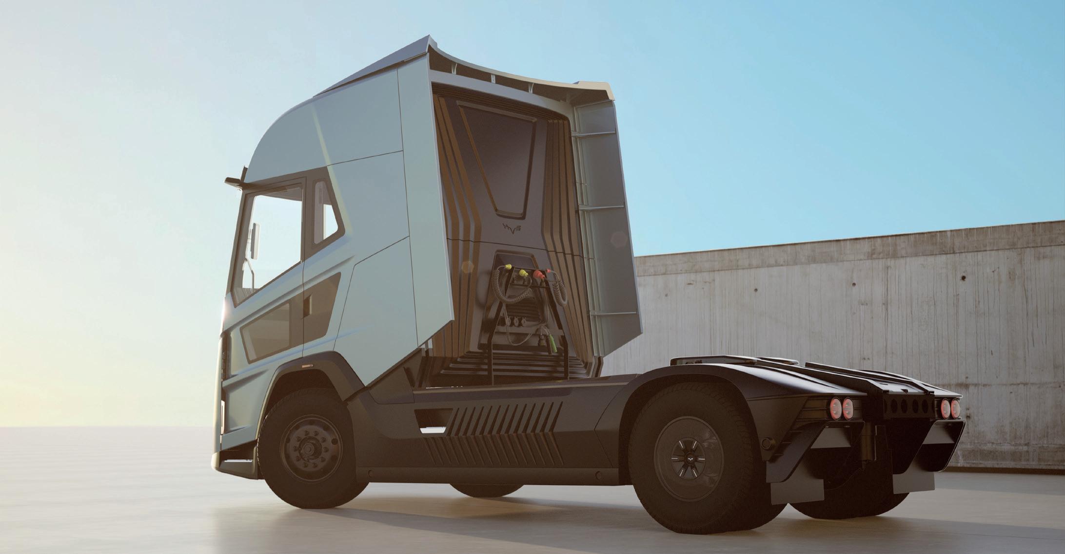 HVS’ ground-up designed vehicles have been specifically developed to maximise driver comfort while the platform is purpose built around the hydrogen powertrain. The vehicle’s design includes a suspended cab at the front and a fixed tower at the rear, housing the thermal and powertrain systems.