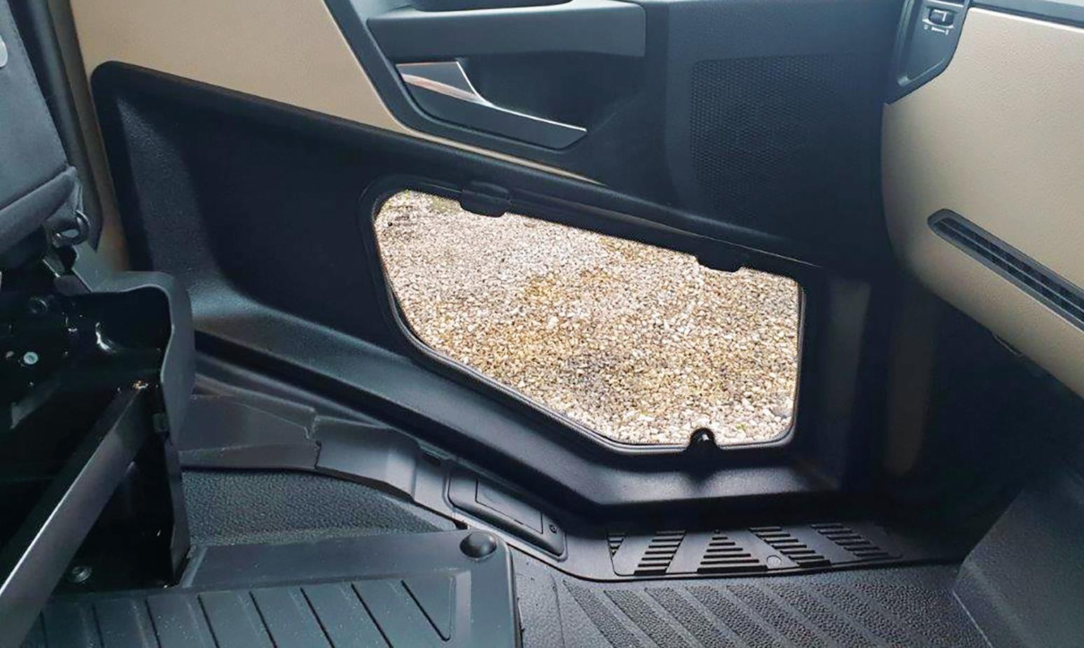 Positioned on the nearside peeper window in portrait format, the lens can improve forward visibility by 30 degrees. It allows drivers to see into the area obscured by the nearside windscreen pillar and mirror array, considerably improving their ability to spot