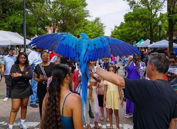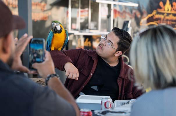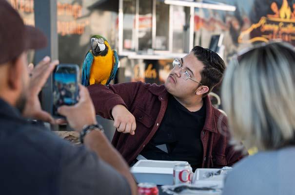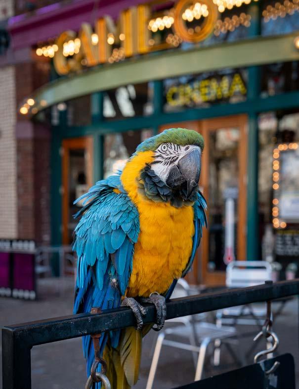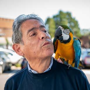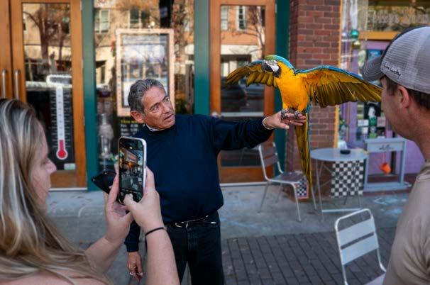 Ten years ago, CityView wrote about a popular duo who regularly stroll Hay Street, meeting—and perching on— new friends. Robert Lints and his pet Macy the Macaw are still regularly seen dining downtown (yes, even Macy) and strolling through local festivals. We caught up with them to see how they’ve been this past decade. Spoiler alert: the love for his animal companion has stayed strong.