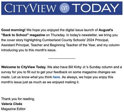 Assistant Editor, CityView Magazine bhorner@cityviewnc com
