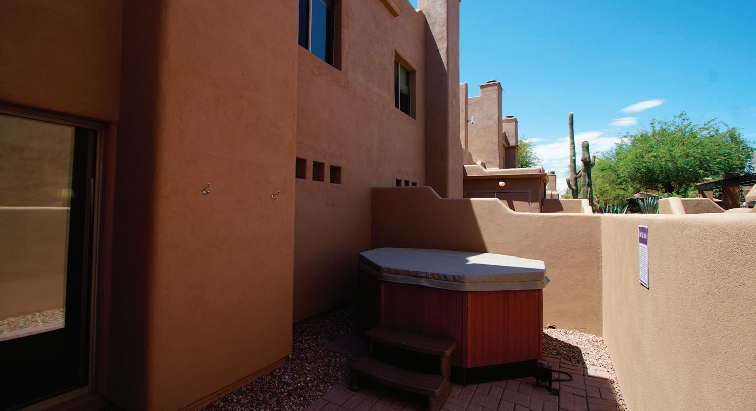 The two-story, two-bedroom villas feature a fully equipped kitchen, two fireplaces, whirlpool bath, and a private backyard with a spa. Each villa offers a quiet, relaxing retreat amidst the backdrop of beautiful Cave Creek. Watch a magnificent desert sunset from your private backyard spa, or enjoy a romantic evening dining under the stars. The comfort and beauty of this resort will amaze you.