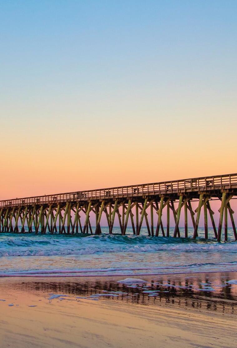 Myrtle Beach presents the quintessential beach vacation, ideal for those who relish a laidback, flip-flop lifestyle. Visitors enjoy wide beaches, clear ocean waters, and year-round moderate temperatures, complemented by vibrant entertainment and southern delicacies. Treat yourself to a stay at our oceanfront Maritime Beach Club in North Myrtle Beach (see page 188). It serves as the perfect base to explore the area’s attractions and offers the added delight of a glorious morning sunrise from your balcony.