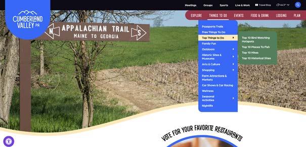 • Redesigned VisitCumberlandValley.com to improve user experience, increase engagement, and reflect an updated brand identity. The new site offers a modern layout that encourages users to stay longer, browse more pages, and explore our offerings.