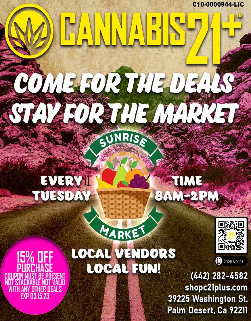 www.coachellavalleyweekly.com April 6 to April 12, 2023 21 15% OFF Daily From 2pm - 5pm With this CV WEEKLY Coupon EXPIRES APRIL 15, 2023. ONE COUPON PER VISIT.