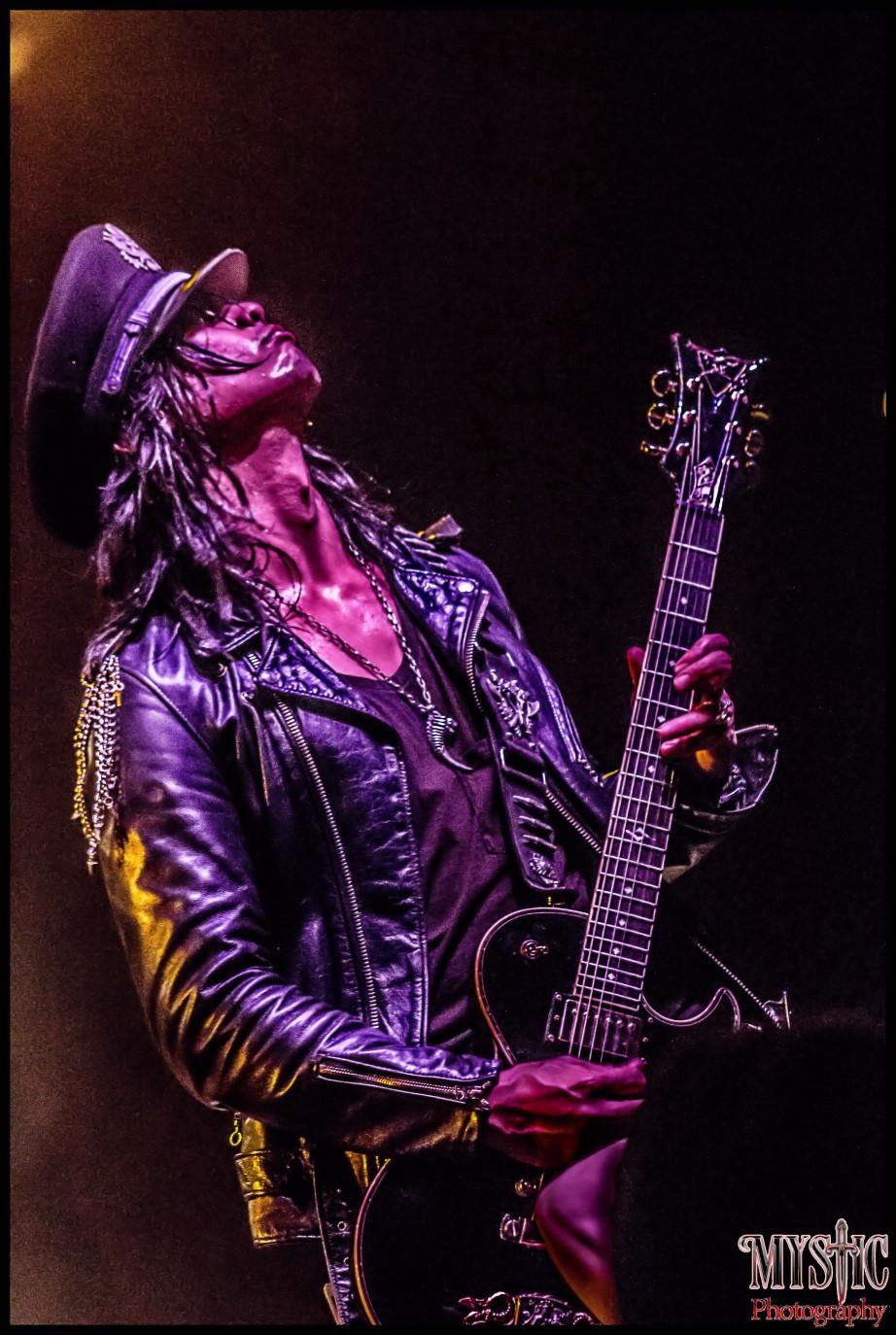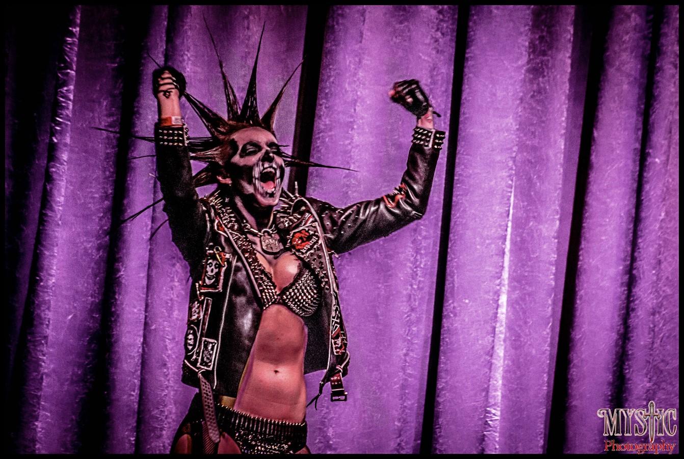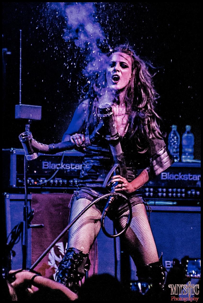 Beasto Blanco from Los Angeles CA with none other than Calico Cooper, daughter of rock and rolls theatrical mastermind Alice Cooper and Chuck Garric on vocals and guitar. Chris Latham guitar, Jan LeGrow bass, and Tim Husung on drums, not only does this band have the complete in your face rock but the intense theatrics. The played about 10 songs with the most beautiful one being 'Feed My Frankenstein' with the brilliant Alice Cooper coming out and singing with his daughter Calico. The performance was well done and a high-