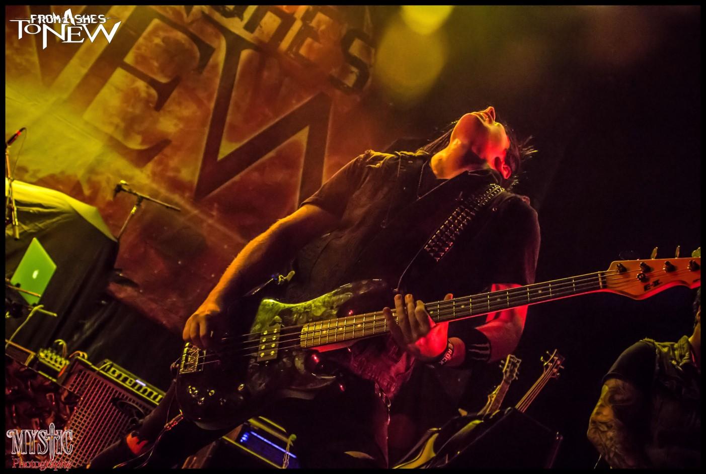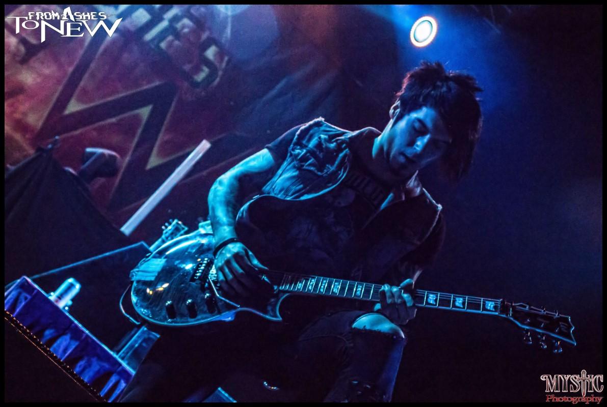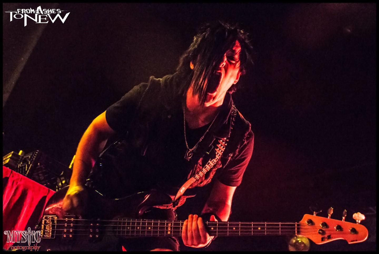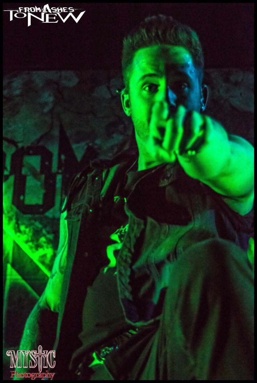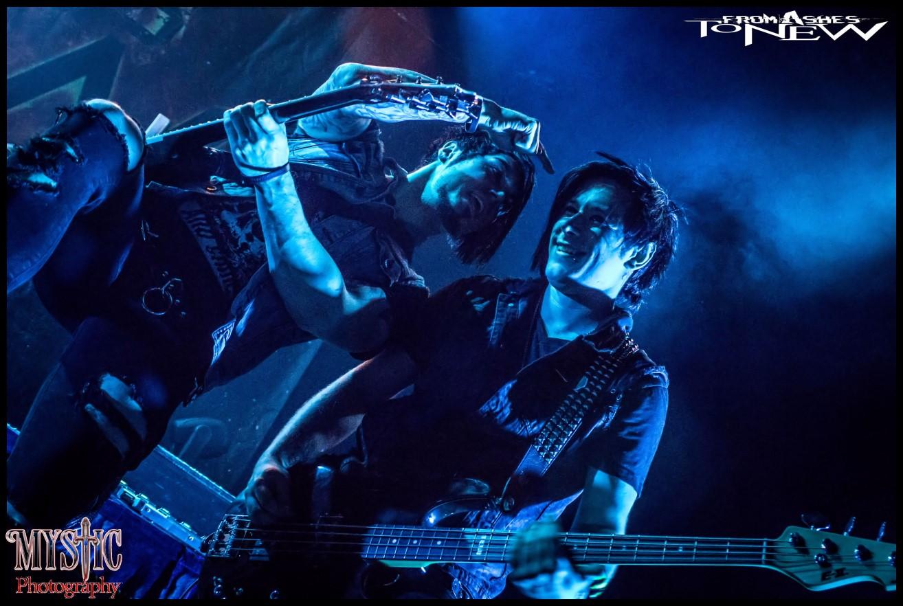 <CHRIS> The band name from ashes to new came from a song lyric in a previous band that Matt and I where in together. And it kind of just fit for the fact that all of her other metal bands burnt out over the years and we all pulled together to start a new and make this new combination or crossbreed a different genres a metal rock cocktail.