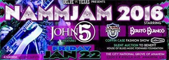 GROVE OF ANAHEIM. Doors will open at 6 pm for dinner and cocktail service. Entertainment begins at 7 pm. Official Media Sponsors for NAMMJAM 2016 are GUITAR WORLD and REVOLVER MAGAZINE. Official show photography will be provided by renowned con cert photographer, CHAD LEE.