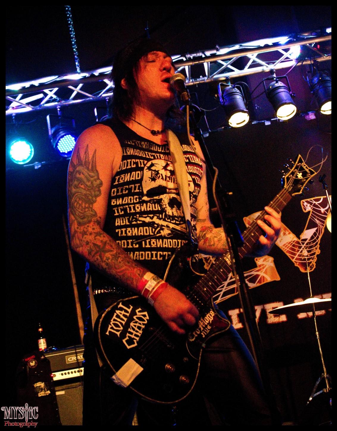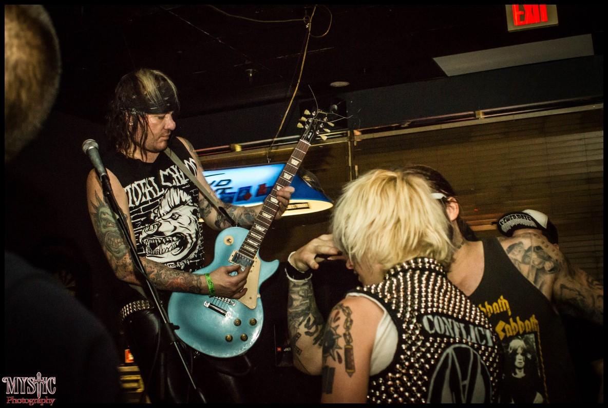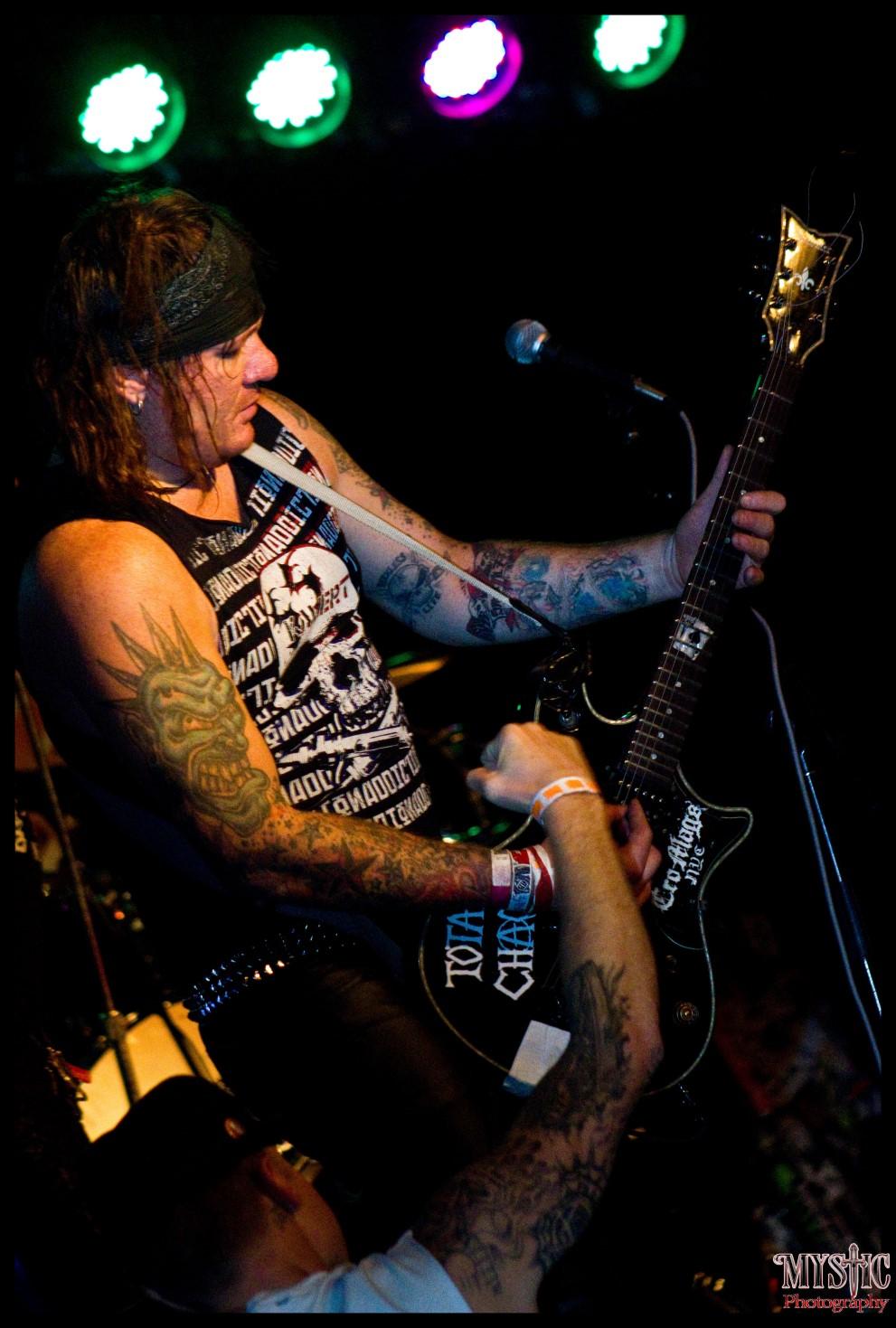 <Miguel Conflict> My 1st show with Total Chaos was at a festival in Colombia. We headlined with over 3,000 there to see us perform. I played bass at that show, I 1st joined the band as the bassist for the 1st year.
