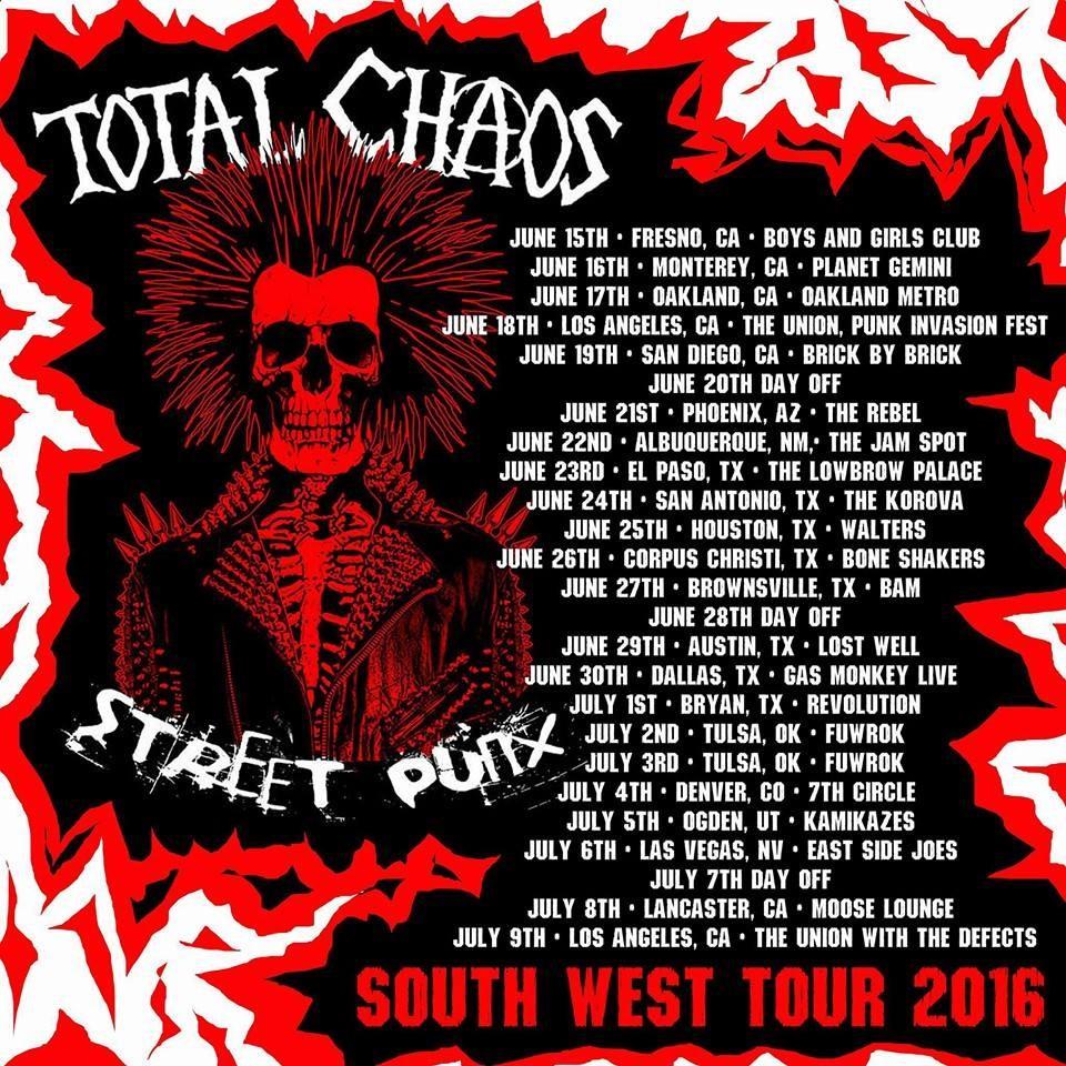 <Shawn Smash> You can check out our FB page for upcoming tour dates, news and new releases and also Total Chaos "Police Rat" and "Riot City 2016" YouTube Video.