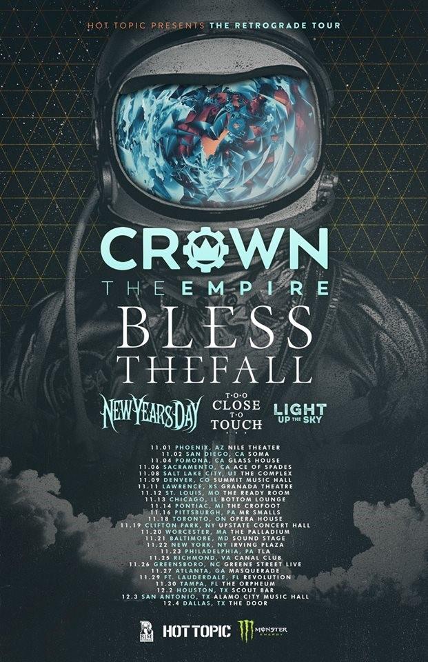 NEW YEARS DAY are about to embark on the "Retrograde" tour with Crown The Empire and The month long North American trek will see the band supporting their latest release, Malevolence and will be their first tour in the US since May of this year.