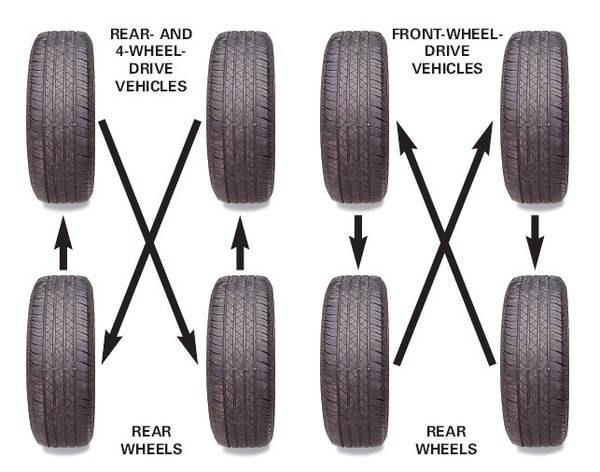 two tires won't need replacement prematurely. The Tire Rack Web site offers common rotation patterns, but Edmonds recommends sticking to the pattern in your car's owner's manual. Furthermore, when you perform the rotation yourself, you can closely inspect the tires for defects and premature wear. You might spot a nail that's stuck in a tire and is slowly deflating it, Edmonds says.