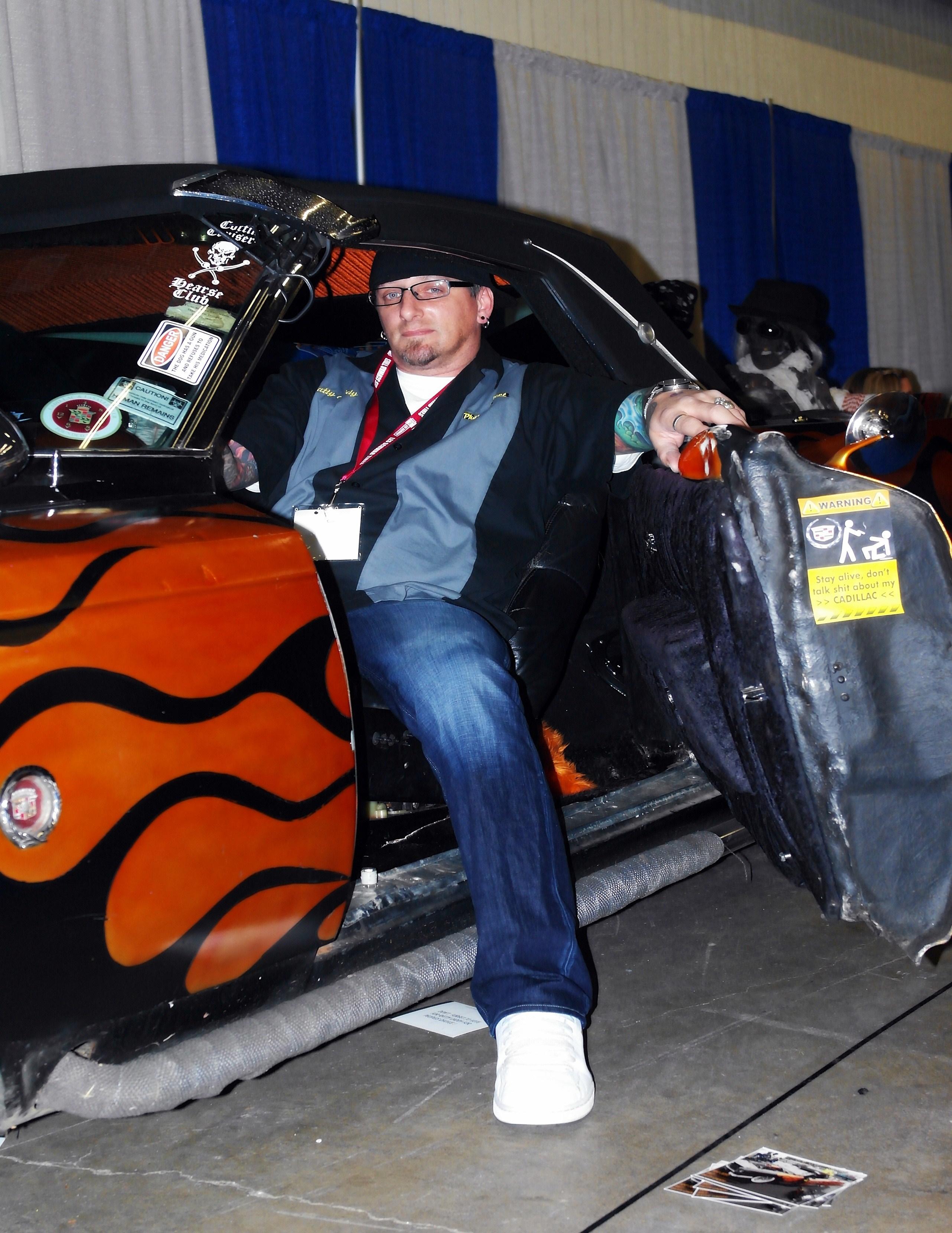 Not just another pretty face, Ratty Caddy has been wowing the people of Portland with his fleet of rat rods, each a dynamic blend of macabre and fun. There is Ratty Caddy, your night stalker. There's also the Embalmer, a '73 Superior Hearse formerly used to transport poor souls willing to ride in the "final car ride", now just a fun taxi. Ratty Caddy and his friends enjoy tormenting people with their crazy and gothic vehicles around the city; the Twisted CC, Coffin Cruisers, and Pharoah's Street Rodder clubs enjoy breaking the necks of people who do a double take when they drive by. As Ratty Caddy says, "when you're on the streets of Portland, look for the Embalmer or Ratty Caddy (and friends), and give us a wave, whether it be a five fingered wave or just the wave telling us we're number 1!". It's all good and evil in the world of Ratty Caddy.