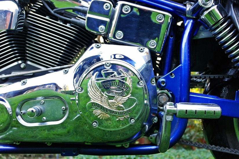 Front End: Inverted 6” over stock, Hidden axle & fork nuts, Stock fender, Single disk brake, 21” Wheel, 1 1/4 Ness Bars