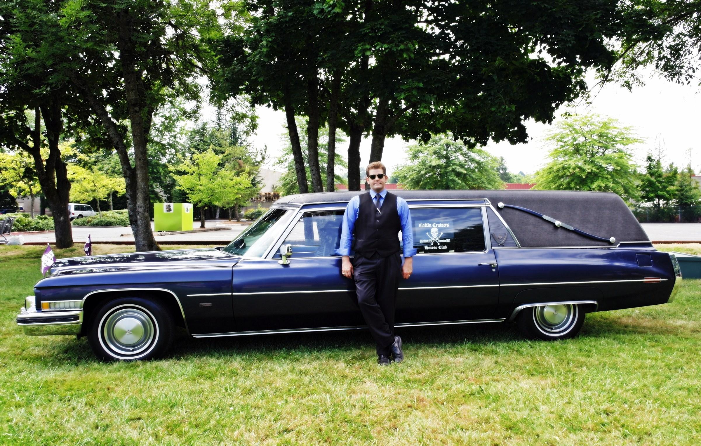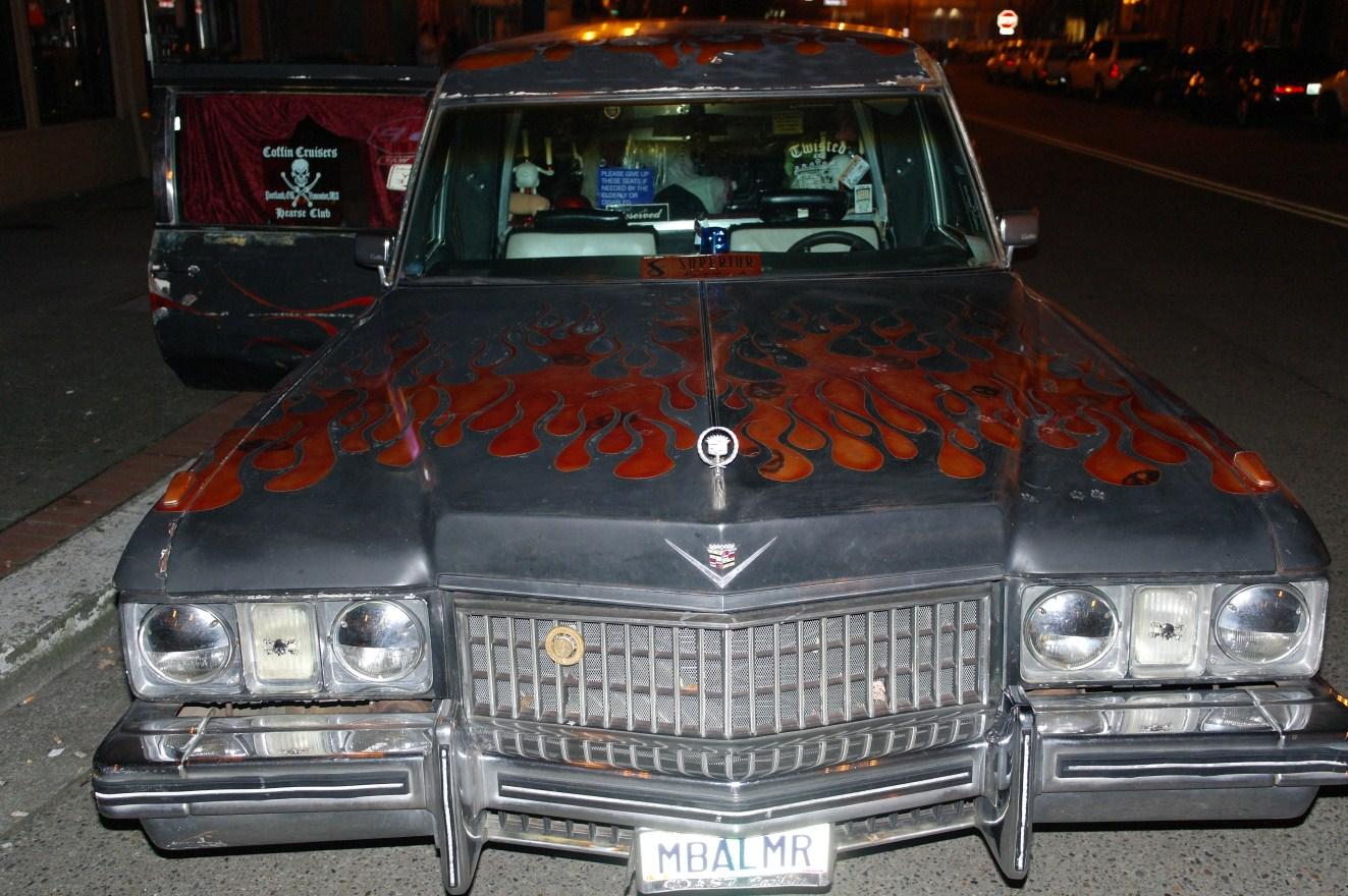 Elphaba is a 1973 Cadillac Eldorado Hearse. She was named after the Wicked Witch of the West from Oz. She and I joined the Coffin Cruisers Hearse Club of Portland and Vancouver in 2008. Coffin Cruisers is a group of hearse enthusiasts that love their rides. We have about 15 hearses in our club and we would love to have more. Find us on Facebook if you want to join or want to boo something.