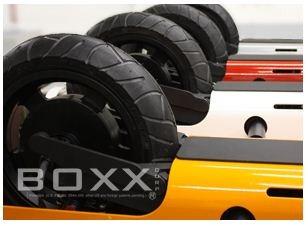 You say "roadworthy" in your description, do you envision this on highways or just regular roads? Also, without the upgrade to CORE2, 40 miles is pretty good even now, you see this as a short term errand type vehicle? BOXX is one meter in size and roadworthy. This is to say, it is fully equipped as a roadworthy two wheeler. Lights, tires, standard tire size, power and ability. Yet again it is compact. And again, this is also why it’s does not fold up into your back pack. BOXX is a machine, it is tough and feels like a nimble tank on the road. To relate: I much prefer the design of an efficiently powerfully tuned 4 cylinder engine over a sloppy relaxed muscle V8. So you will find BOXX sporty and capable on standard power because it is tuned and optimized for its purpose. BOXX can run at a third of the electrical power of a standard electric bike to hit the same speed. 40 miles, 80 miles, 120 miles are all on BOXX's reach with standard CORE pack…that’s a lot of miles for a day. It can be used for any kind of errand you like, rural or urban. BOXX will go where other scooters and two wheelers go, as it is AWD and BOXX Corp. owns the patent on AWD for all electric two wheeled vehicles using two motors). Further, our CORE product line is modular; this means you can take the batteries out of BOXX yourself and replace with say our CORE 3 for more range. So one day if you have your BOXX for five years and some 500 mile battery comes out, you can purchase it and you can put it in. Range ratings on BOXX are really irrelevant since it is adaptable - that includes charge times too.