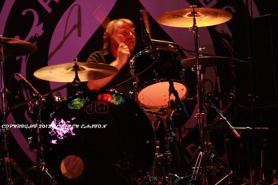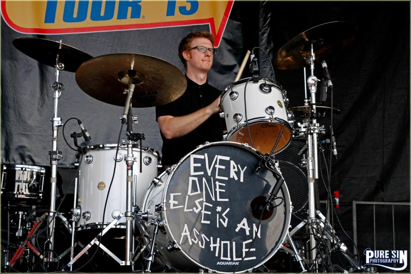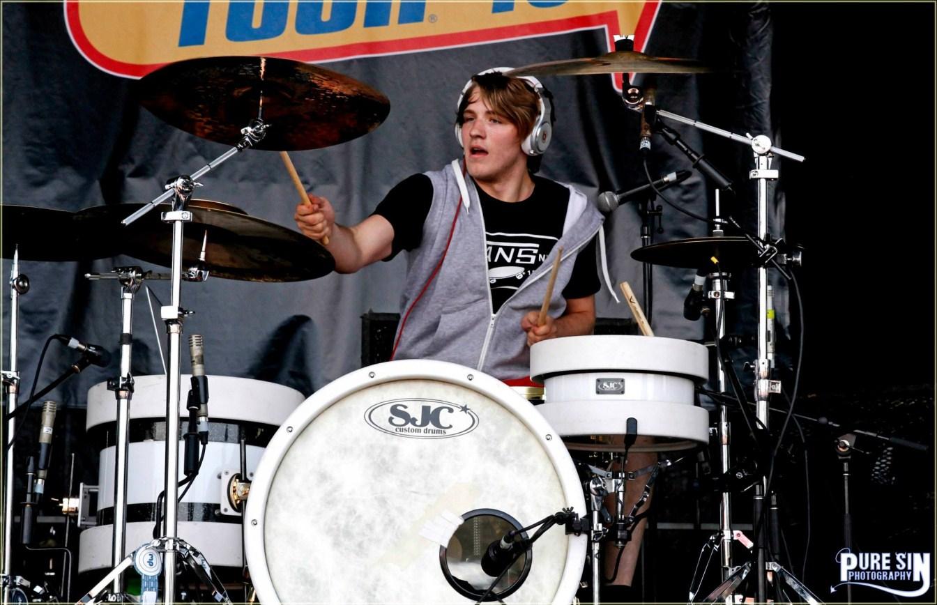 concert band so I like diverse rhythmic patterns. I take a little from all the music out there and that seems to hone my songwriting artistry! Led Zeppelin was a huge influence on me, especially John Bonham. He just hit the drums with a power and conviction that I believe makes up a large part of my drum style! A number of other drummers can also be of note… Carmine Appice, Shannon Larkin, Tommy Lee, Scott Phillips and even our local boys Michael Derosier and Scott Rockenfeld. I use a lot of different things and make it my own. One thing I do is I ―play for the song.‖