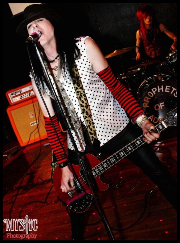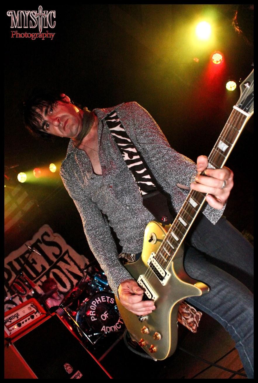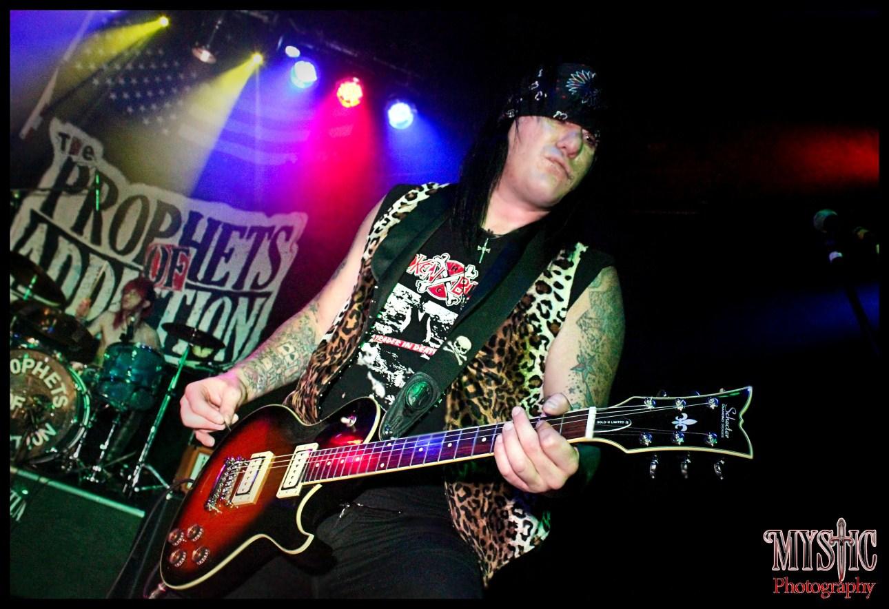 Prophets of Addiction has earned its place as one of the top glam-rock bands around, but is also one of the most life-changing and influential bands in the music industry. The band; Lesli Sanders (bass, vocals), Amit Ron (guitar, vocals), Shawn Smash (guitar, vocals), and Jimmy Mess (drums, vocals), have staked their claim as truly unique among rockers with their intentionally custom lifestyle, their sleazy glam beauty, their dark side, and in the undisputable truth of their lyrics. Based on his life as a hardcore rocker, Lesli's lyrics run far, wide, and deep in no uncertain terms of social alienation, deviancy, and drug addiction, evoking the exhilaration and destructiveness of modern urban life but with that twist. Anyone who can sympathize, who has been on the rocky road of addiction and destruction, knows the words they sing, the language they speak, and the emotion projected through the lyrics of the band. Their music is undeniable truth, borne of experience and first-hand knowledge - they understand that while not everyone will like their sound, nobody can argue with the truth their words, style and their message.
