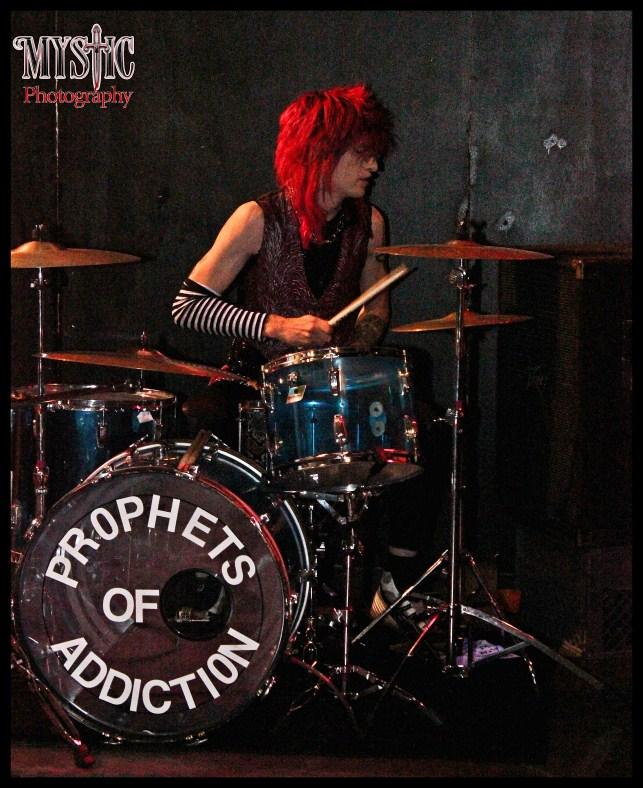 Their style is most distinctive - sleazily defined hardcore sound but with a 'sober' attitude. Together the band shapes the foundation for up and coming musicians of all ages and genres of music and lifestyle. In songs like "Still Alive" and "Babylon Boulevard", they detail the journey down one-way streets, checking in but not being able to check out, the decisions that burn bridges with friends and supporters. Prophets of Addiction's music is a life changing message of defining statements of a hard life, stories of overcoming the worst a person can face in life to arrive as a place of joy, of worthwhile moments in your day. Listen to their songs, and the words "inspiring" and "motivational" come to mind. But as somber as some of their lyrics might be, their stage presence is incredible, their pace frenetic. The boys rely on each other's charismatic image, their nuclear energy, the effort that comes from having lived the life about which they speak. They stand on stage confident in their experience, firmly grounded in their ability to put on one helluva show; they are a band to follow, worth the price of admission, because they are true to their roots, life, and words. Can you face their message and be changed, be inspired, dare to live on the wild side? There's only one way to find out; go see Prophets of Addition for yourself.
