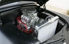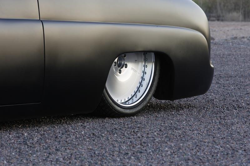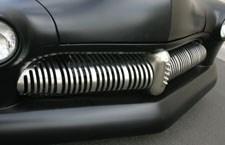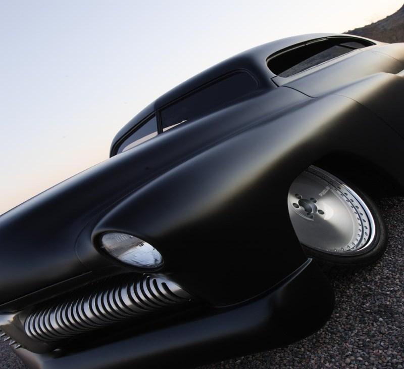 1949 Mercury is truly a very unique vehicle in that the complete body is all custom metal fabricated, with flat black paint that is cleared for protection. It has Custom 20-inch FS903 3 piece wheels with BFG tires, Scotts Hotrod Mustang II front end, Air Ride Technologies air bag system, Magna-flow exhaust system, Air Mobile aluminum radiator and dual fan set up, Dakota Digital air bag monitor system, Lokar pedal and accessories, Auto Loc power trunk fabricated, Auto Loc power window set up, Drip rails removed, headlights frenched in, tail lights modified to Cadi taillight, front and rear bumpers removed and replaced with all hand worked metal for a smooth look, sides moldings all removed and all holes welded up, rear side quarters all welding in and smoothed out. Dakota Digital air ride control and a huge Pioneer sound system are all custom built in with matching leather interior. The engine Buick Nailhead was used with a 871 blower and all the goodies, Vintage air conditioning and Street & Performance built the pulley system to run the power steering and ac unit.
