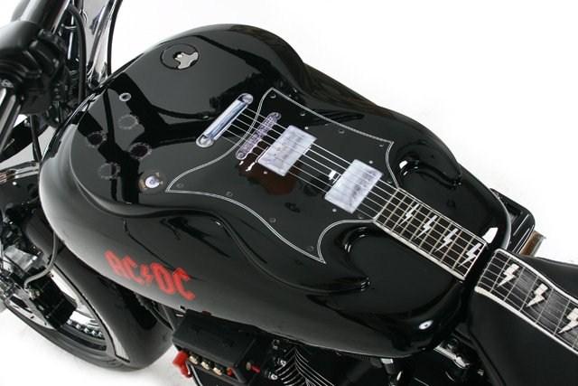 The AC/DC Tribute bike classically titled "Back inBlack" was a three month job, start to finish. It goes without saying that the customer who commissioned it is a massive AC/DC fanatic, and, as it turned out, the band proved to be a superb theme around which to build a bike for such a rock music buff and you can be assured that when he saw it for the first time he had to quickly find a chair to sit down in before he fell down.