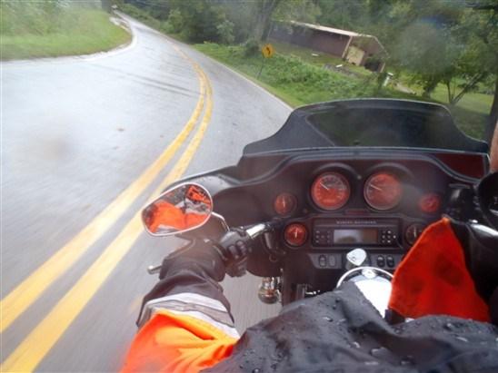 help keep them warm too. Another option is purchasing a rain suit to wear over your leathers if you don't have all weather gear. Waterproof your boots prior to riding in the rain as an extra precaution. However if you still don't want to spend a few extra dollars on a rain suit and waterproofing boot spray, then another, albeit low-cost option is to wear a couple of large trash bags over your clothing and plastic grocery bags inside your boots wrapped around your socks to help with rain-proofing yourself. Riding in the rain is not fun, but it's even worse if you get soaked.