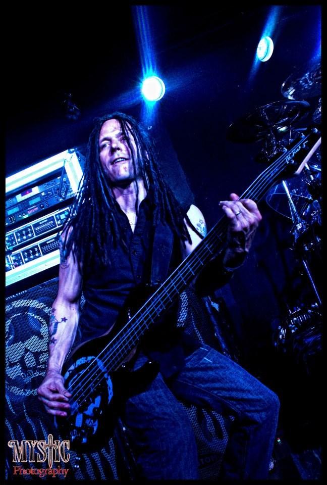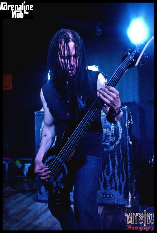 For guitars, I primarily use my Dean Eric Peterson Signature "Old Skull" V with EMG 81/85 pickup setup as well as a '96 Epiphone Les Paul Standard, a Dean Eric Peterson Signature "The Hunter" V (both with Duncan JB's in the bridge and a Duncan '59 in the neck). I also use a '04 Jackson Dinky Pro with a Duncan JB in the bridge (I use this guitar mostly for clean tones and any whammy crap). For basses, I use a Dean