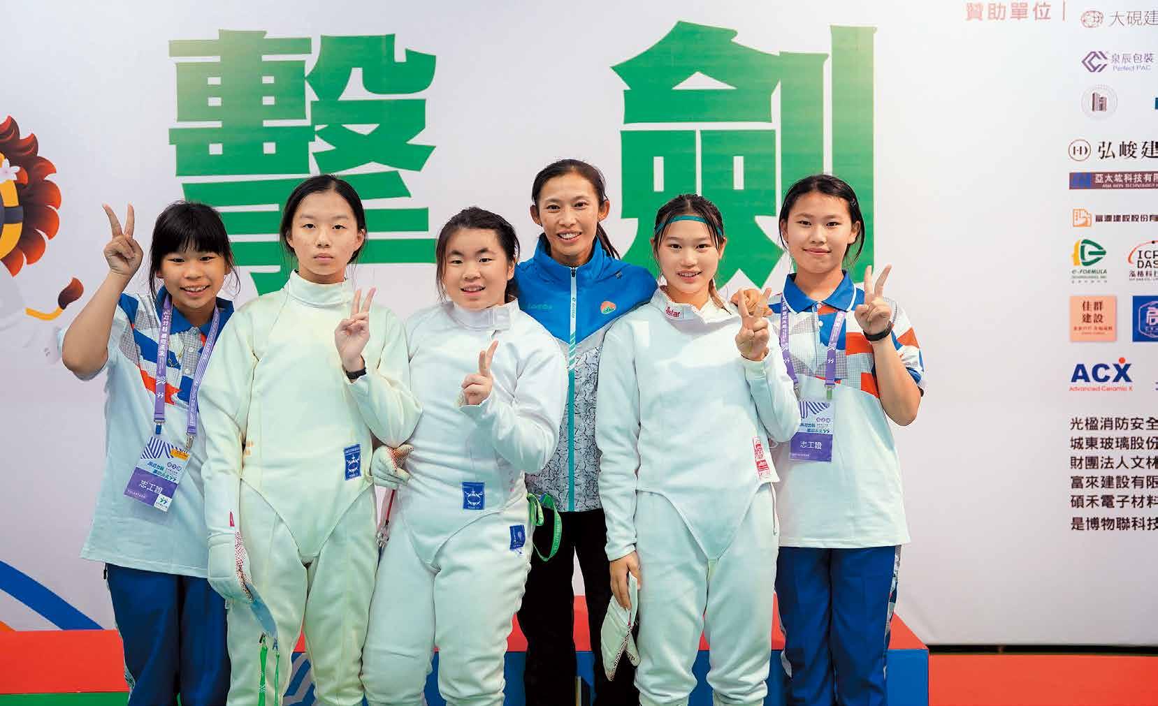 習、一起出戰全中運,2022年獲全中運銳劍 團體銅牌,2023年更上一層樓,在母校─竹 北國小場地,聯手奪下國女組團體銳劍金牌。