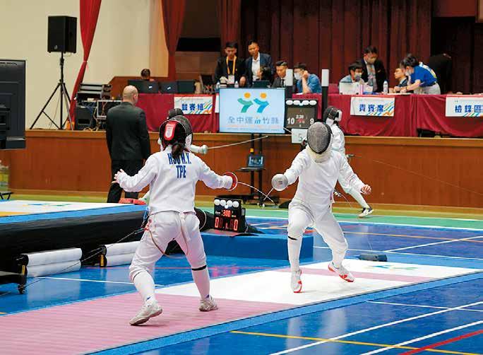 「第一次走進擊劍訓練場,看見選手們穿著潔 白優雅的劍服在場上揮舞著,目光深深被吸 引,更期待自己也能穿上裝備,趕快加入訓 練。」江婕羽自小學一年級開始學習擊劍,她 認為擊劍的魅力在於場上變化多,不僅運動也 需動腦,十分有趣。小學六年級時,她邀同學 張芯慈加入擊劍的領域,倆人一起練習,成為 默契十足的好搭檔。