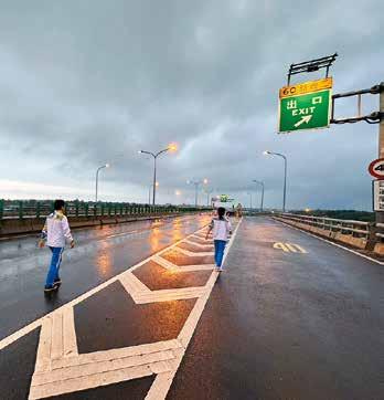 明明還只是四月天,連續好幾日新竹日頭的炙焰卻足以讓 人坐立難安,接近中午的竹北滑輪溜冰場,沒有任何遮蔽 物,場邊卻有幾個孩子們正整裝練習,踩下滑輪,為即將 到來的全中運比賽準備全力乘風奔馳。他們都是仰德高中 的學生,其中還有2022年全中運滑輪溜冰的得名選手。