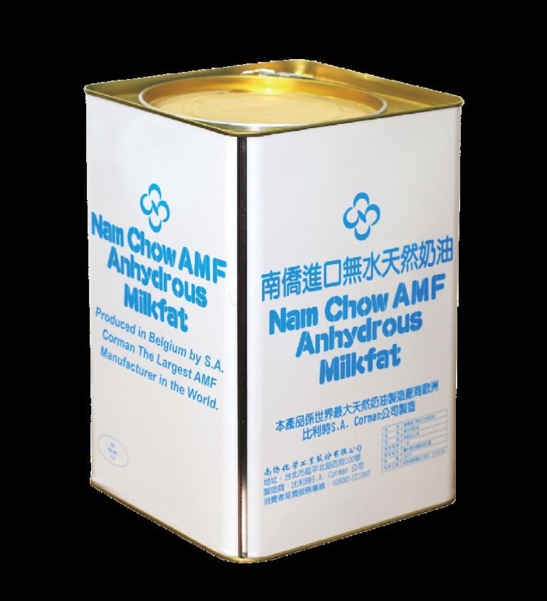 「澳洲乳源奶味重,歐洲乳源比較清 香,富比威發酵奶油則是天然微酸、風味 明顯,特別適合製作海綿蛋糕,搭配藍米 勒鮮奶油做焦糖布丁蛋糕,或是製作福吉
