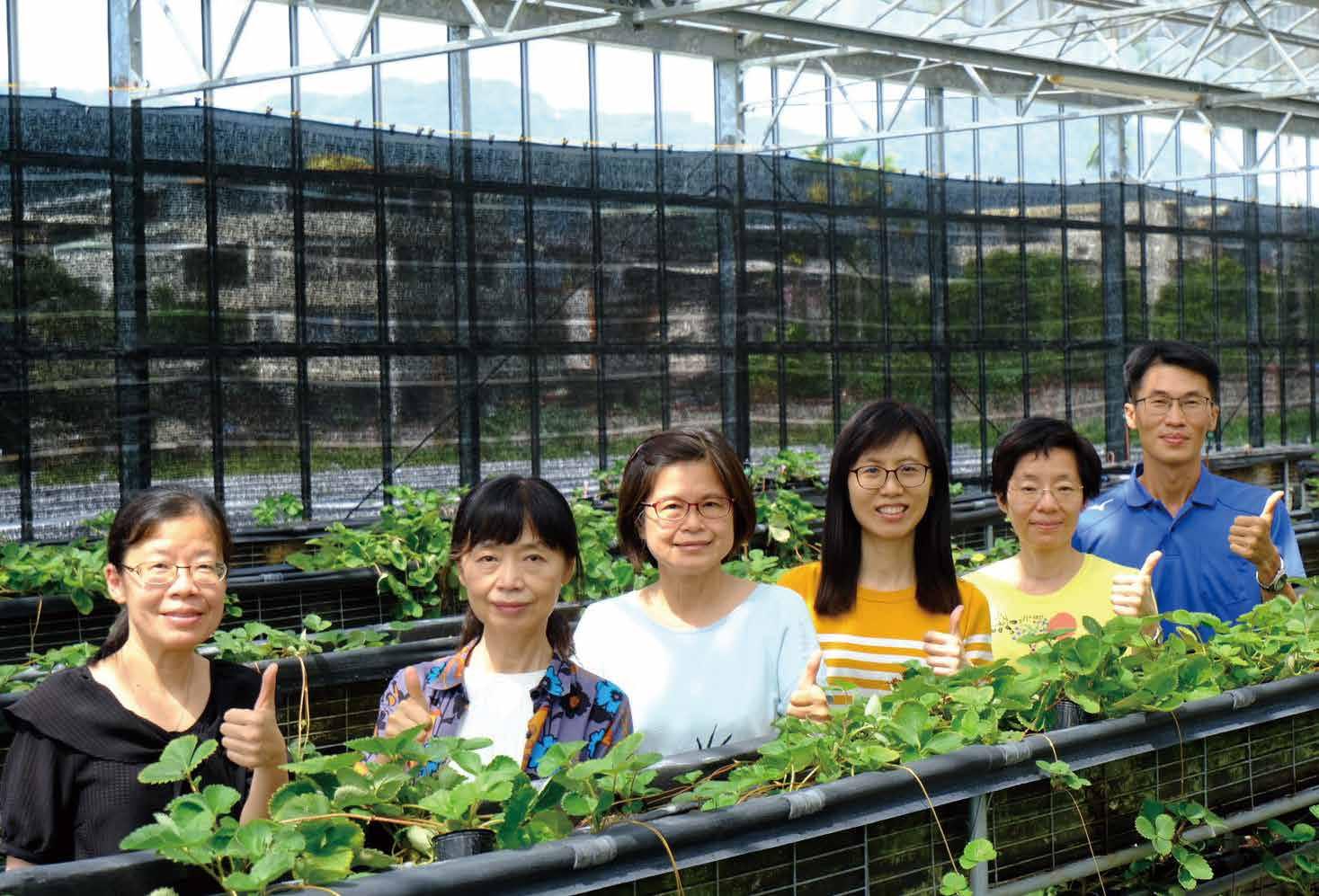 ︱農業生物科技︱ 14 草莓是許多國人喜愛的水果之一,每當產季到來,市面上總會掀起一股「草莓熱」,可說是非常具經 濟價值。但其實草莓非常嬌弱,在栽培過程容易受病蟲害侵擾而減產,為了解決草莓農的難題,在科 技部「智慧科技於農業生產之應用」專案計畫支持下,國立臺灣大學與行政院農業委員會苗栗區及桃 園區農業改良場合作,協助農民共創健康草莓育苗及生產模式。 撰文/林郅、財團法人農業科技研究院研究員 陳南宏 攝影/林郅 跟炭疽病說掰掰 從源頭與非農藥技術根除草莓病害 隨著全球暖化加劇,極端氣候與各式病蟲害導致蔬果 農產損失慘重,炭疽病就是草莓的頭號殺手,在 2015 年甚至曾導致臺灣草莓缺苗至少 400 萬株,造成農 民龐大經濟損失。為解決此困境,臺灣大學攜手苗栗區 及桃園區農業改良場,希望建立草莓耐逆境栽培模式, 達到有效降低炭疽病發病率、減少農藥使用並提高產量。 行政院農業委員會苗栗區農業改良場呂秀英場長表 示:「為了達到根除草莓栽培病害目標,研究團隊自三 個執行面向著手:一是建立草莓炭疽病快篩技術;二是 建立草莓炭疽病物理性防治技術;三是透過非農藥方式, 提升草莓自我保護能力。」希望藉由這三道防線,增進 草莓生產產量及產值。 研究團隊為草莓病害防治共同努力,左起依序為行政院農業委員會苗栗區農業改良場生物防治分場鐘珮哲分場長、呂秀英場長、計畫主持人陳昭瑩 教授、鍾嘉綾教授、林乃君教授、桃園區農業改良場羅國偉助理研究員。