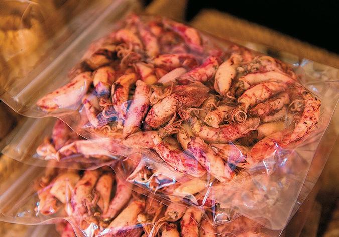 the market, shops serve up dishes like fish ball soup and omelets made with seaweed, testimony to how Penghu residents have taken to heart the saying "Live by the sea, eat from the sea".