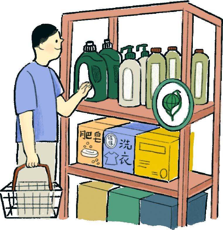 友善環境的思維已深植於消費者的每一次購物 行動,人們會自備環保餐具、購物袋,也會在 購買洗髮精的時候選擇減塑包裝、補充包或是 有環保標章的產品。零售業者紛紛於線上及 線下通路推出整合了環境友善商品的「綠色 專區」方便消費者選購,環保署「環保集點 APP」亦與各大通路合作,提供購買綠色商品 者綠點獎勵 1。