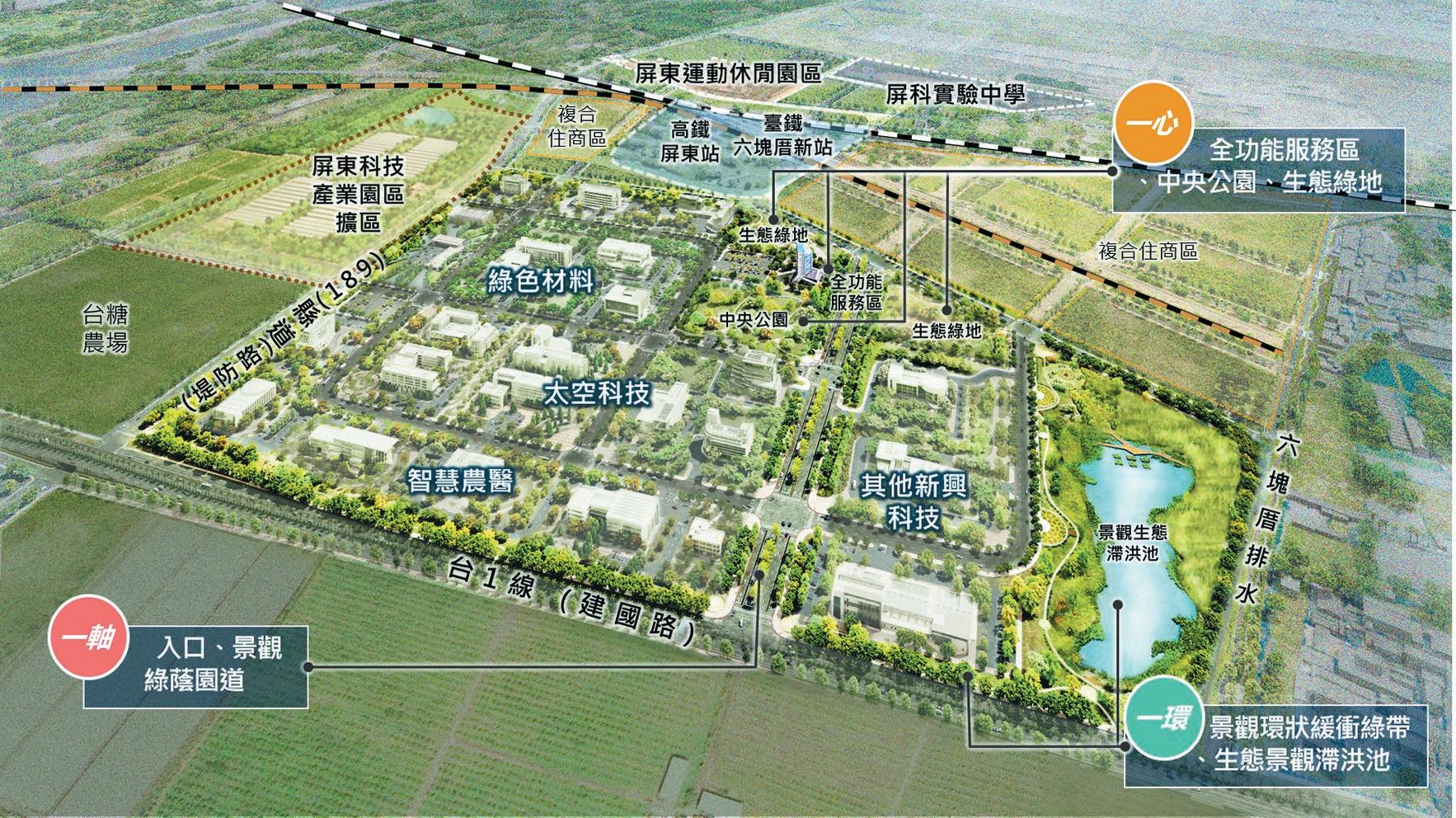 所以南科在規劃、開發上,採取了與以往開發工業區完全不同的 思維,早早就決定「低密度開發」,以避免城市與園區因為距離太 近,而產生各種扞格;除了園區之外,在廣袤的土地上,也規劃未 來居住、休閒、雙語學校、醫療、商業服務等,兼具生活及商務機 能的南科特定區。