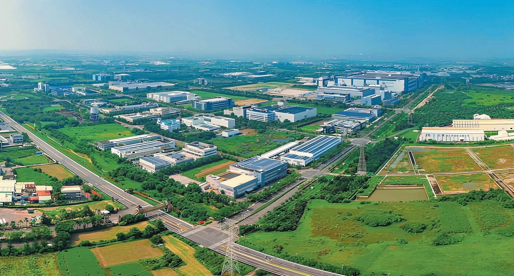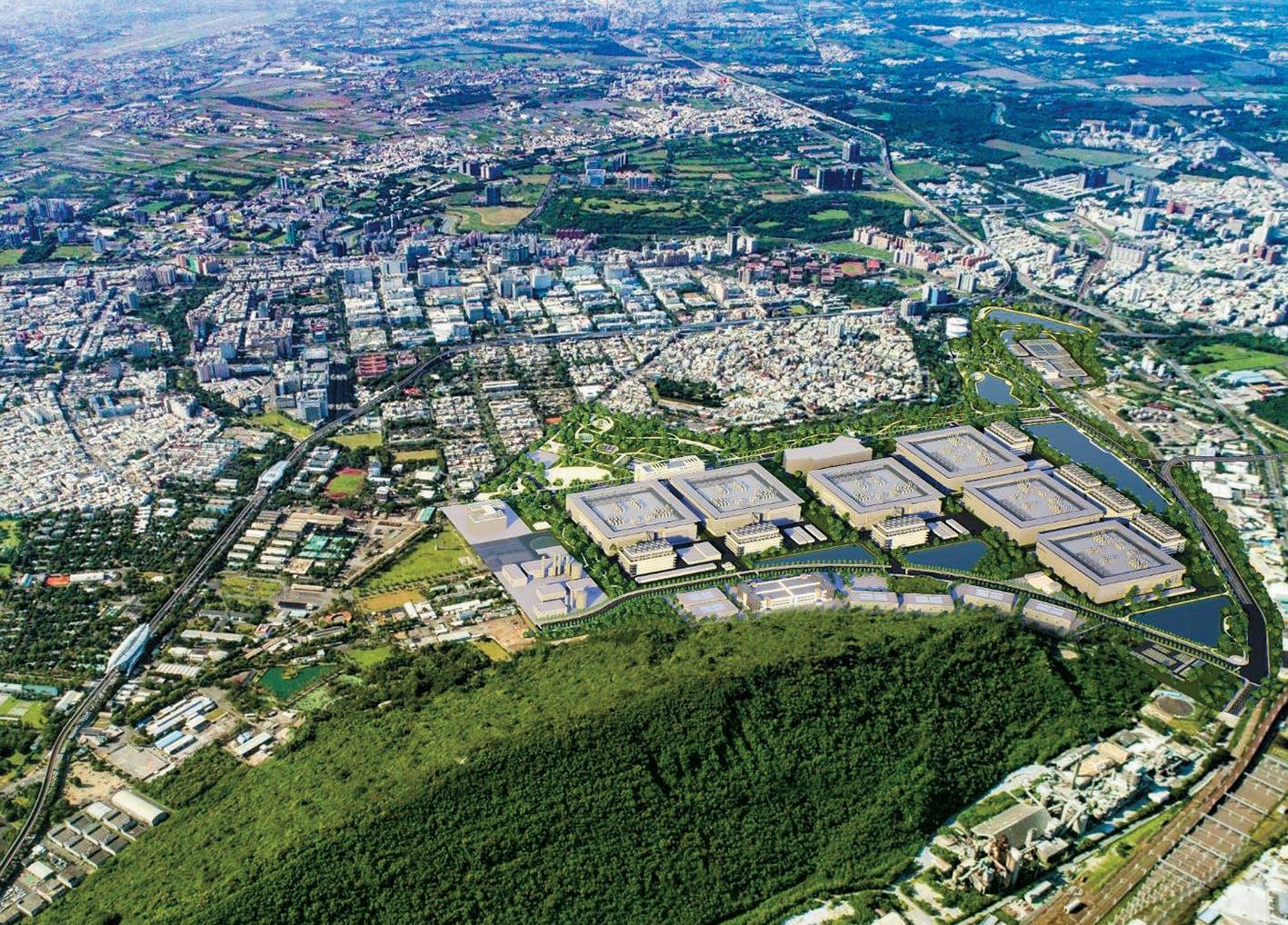 南科臺南園區在規劃上採取「低密度開發」 思維,透過周邊「特定區」的設置,將產業 生產與居住、休閒、醫療等生活機能完善整 合。(照片來源:臺南市政府地政局臉書)