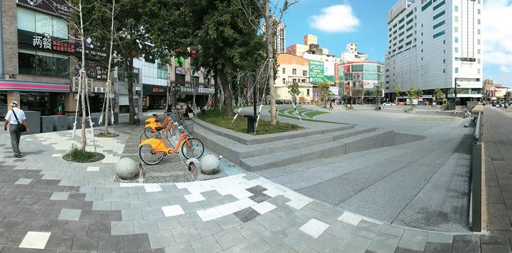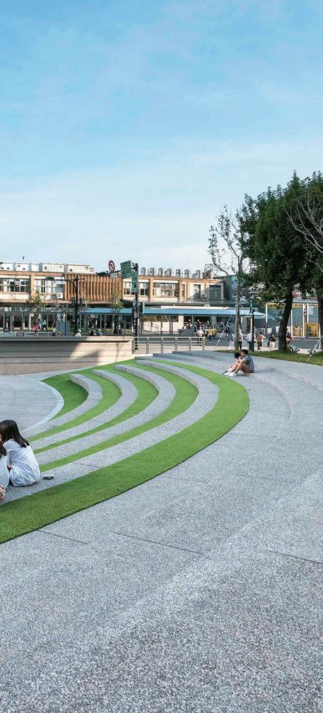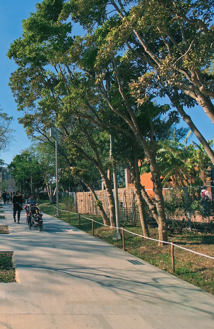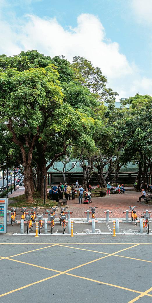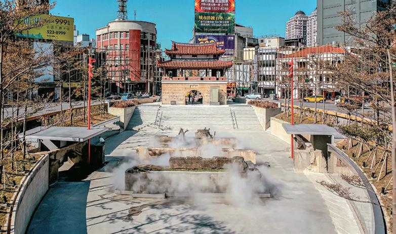 新竹是北台灣最早開發的城市之一,歷經了數百 年發展,如今已是台灣居住人口最年輕的科技 城。在古蹟、老樹、水文交織的空間脈絡中,新 竹市政府從2018年起以火車站為起點,推動友 善行人的「步行城市」,拆除站前中華路阻隔視 覺的矮牆,打造穿透性的迎賓廣場,重新配置道 路系統讓人、車分流,營造出更安全、更舒適的 步行空間,更在短短數年內,成功形塑貫穿舊城 區的百年之路。