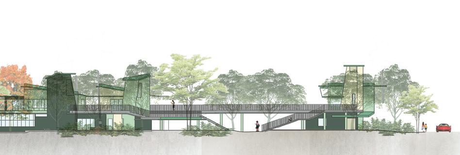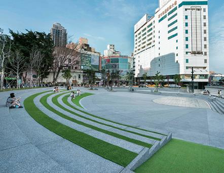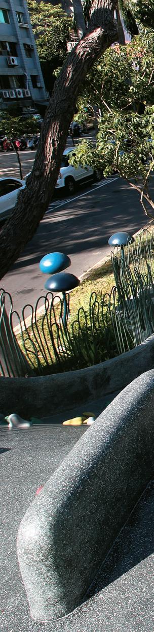 的欄杆、座椅的設計到大的綠蔭步道,超越一般 建築設計的界線範圍,從中深刻感受到什麼叫 「尺度的自由」。「讓我們有機會創造不同的角 度,努力將空間打開,讓市民進入、親近、使用, 並進一步讓這空間作為串接城市綠意、生態及生 活的步行廊道,成為一處城市繁忙街道中難能可 貴的『留白』。」