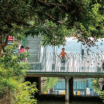 030 新竹夢想之地HSINCHU CITY, THE WONDERFUL LAND 可及性極高的親水步道 . a-b.從巷弄的串聯出發,打造「人走到隆恩圳」流暢的移動空間。 (a.黃聖凱攝、b陳運奇攝) a b