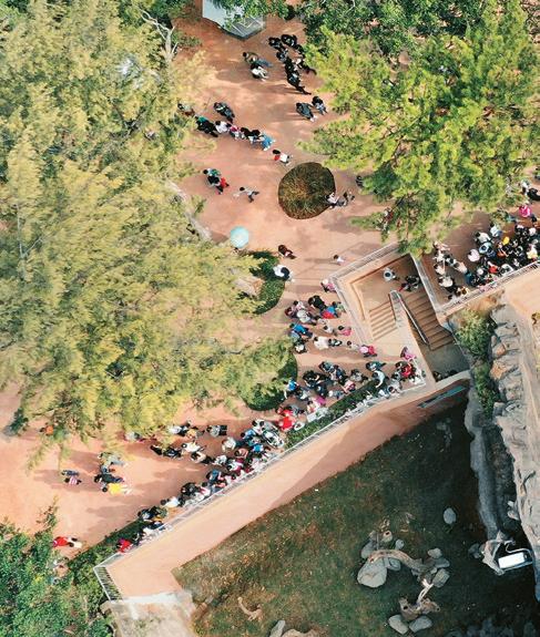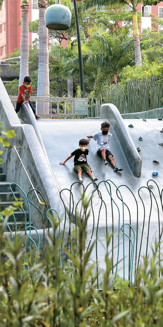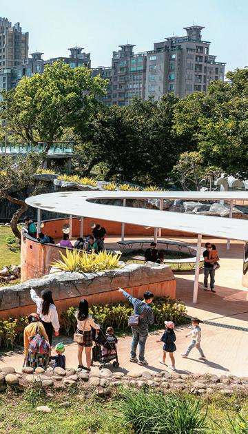 040 新竹夢想之地HSINCHU CITY, THE WONDERFUL LAND 潘一如強調,公園改造除了環境安全、乾淨、舒 適度之外,最重要的一個設計概念,就是景觀要 美。「景觀另一個觀點就是『觀景』,一定要美, 讓城市環境多一些浪漫,使人放鬆。」「我們希 望長和公園以身處舊城社區的歷史文化之姿,以 去蕪存菁整理環境資源的方式,重新締造鄰里共 好的休憩綠地,再次帶動健康愉悅的社區生活氛 圍。」 大榕樹是長和公園重要的意象,許多居民從小就 在樹下玩耍,也是老人家聚會交流的中心。「很 雄偉!」潘一如說,老榕樹就像地方土地神,因 此公園改造以它為中心,全部設施、視線都繞著 它。為保留親子共同記憶、加深居民對園區空間 的情感認同,團隊規劃「榕樹公廣場」,新增花 架涼亭及座椅,為小朋友打造三索平衡木、吊 橋、磨石子溜滑梯,還有環狀高架瞭望平台可當 作祕密基地,以及260公尺環園跑道、籃球場, 是一座讓長者可以散步活動筋骨、孩童玩耍、年 輕人打球跑步練體力的「全齡共遊」公園。 e e.長和公園全區配置。 ( 環藝工程顧問有限公司提供 ) f.改造後 的長和公園是一處小而美的社區森林。 ( 楊智仁攝 )