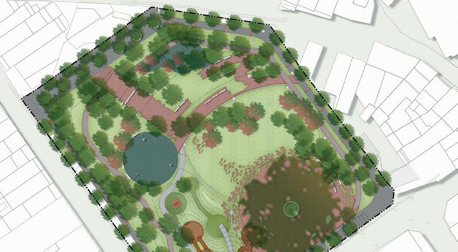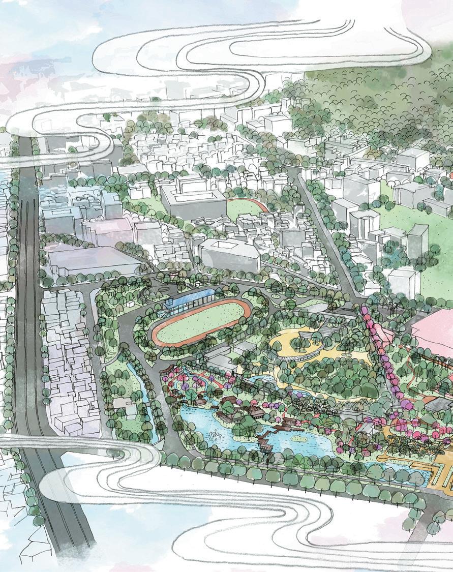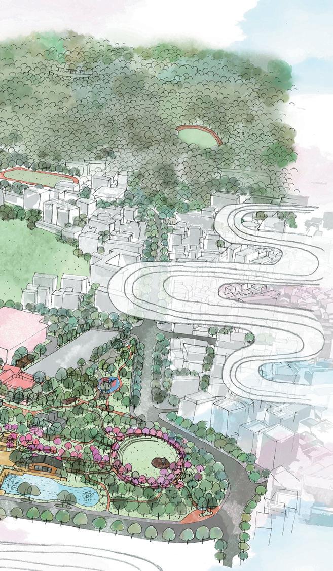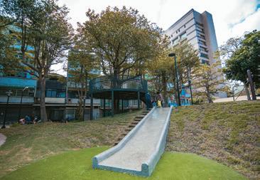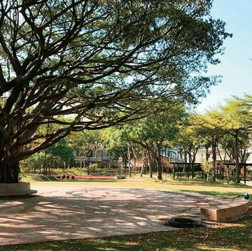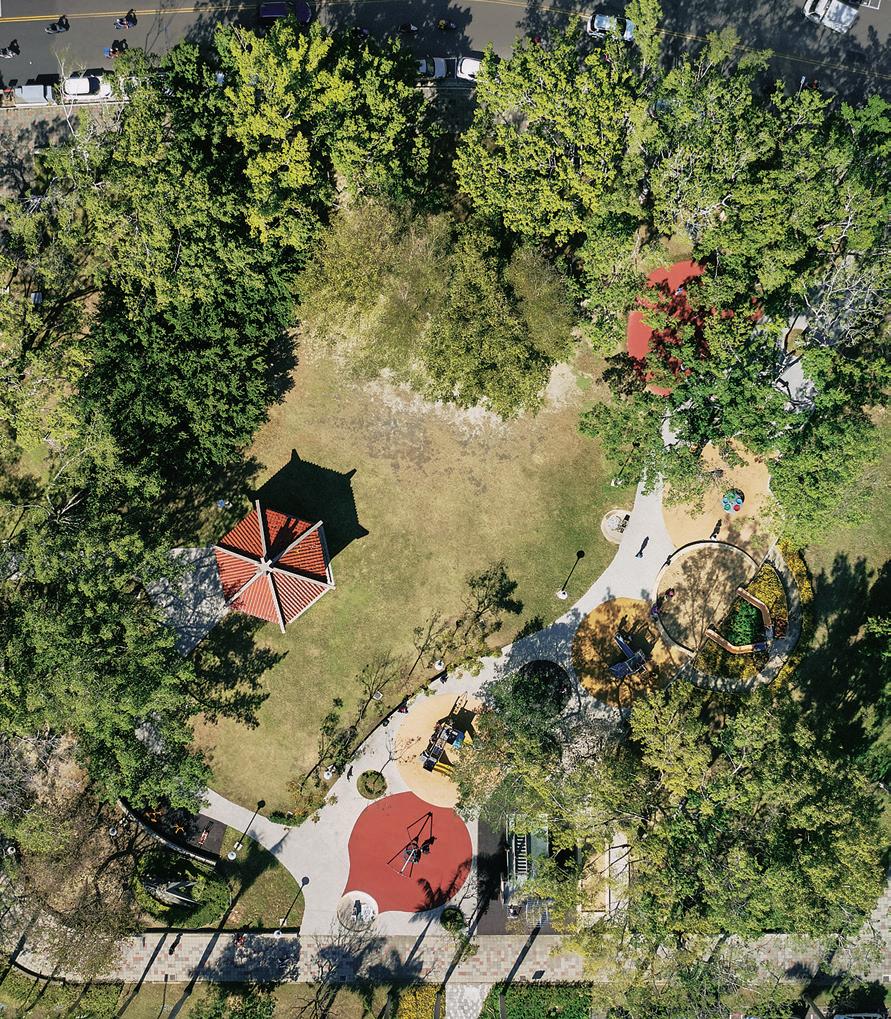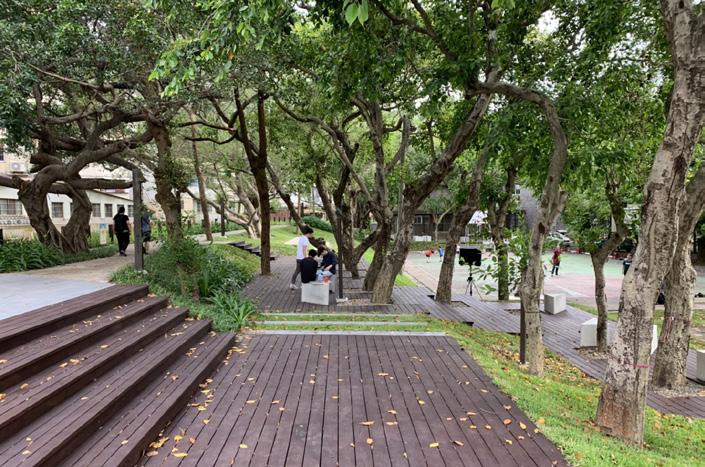 學,拆除老舊及不必要的設施,營造出全區的無 障礙空間,並為園區內數量龐大的樹木做完體 檢,讓設計師得以圍繞著老樹畫出饒富趣味的蜿