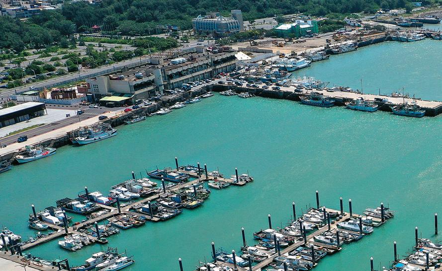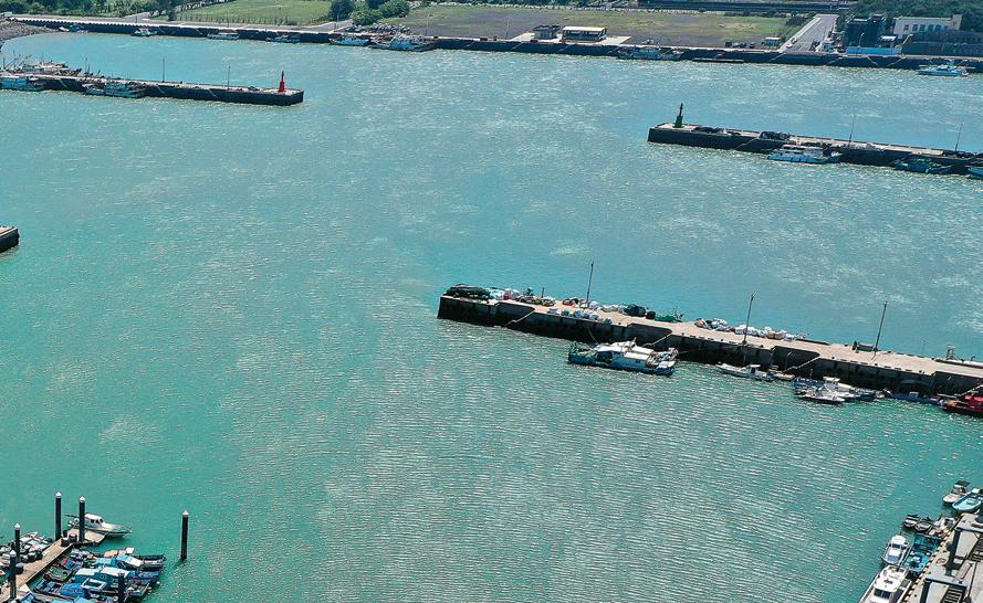 淤積與漁船愈來愈壅塞的問題,1991年完工,港 區碼頭長達2,530公尺,除了漁業運作,也設立 a-b.「微笑水岸計畫」致力解決數十年來新 竹漁港港口淤積、設備老舊及海洋生態劇變 的困境。 ( 楊智仁攝 ) a