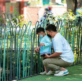 023 SCENE Ⅰ 進擊的公園 共學共玩共日常 「中間明明有這麼寬的河道和綠帶,不知道為什 麼以前大家寧可走在外面的馬路上。」建築師黃 聲遠從宜蘭來到新竹,回想與隆恩圳初相見的印 象:「後來才理解,這裡曾充滿各種失控的植物, 不見天日、蚊蟲很多,更嚴重的是臭味,不用看 都知道哪裡是下游,因為愈接近下游,味道愈 重。」 9月,暑熱漸退,空氣中透出一絲宜人的秋涼。 一群東門國小師生到隆恩圳園道上寫生課,脫離 教室的孩子們吱吱喳喳、說笑打鬧,興奮得很。 「小朋友說戶外環境讓他們比較有靈感創作。的 確是,不同的環境真的可以改變人對同一件事的 感覺。」孩子接過老師的話頭,像在地導遊般侃 侃說起故事:「這個水圳以前是廢掉的,現在改 成公園,讓大家可以來玩,風景很漂亮,我覺得 滿好的。」兩隻小手模擬徐徐微風搖呀晃地:「風 像這樣吹過來,感覺很舒服。」 b c Before After
