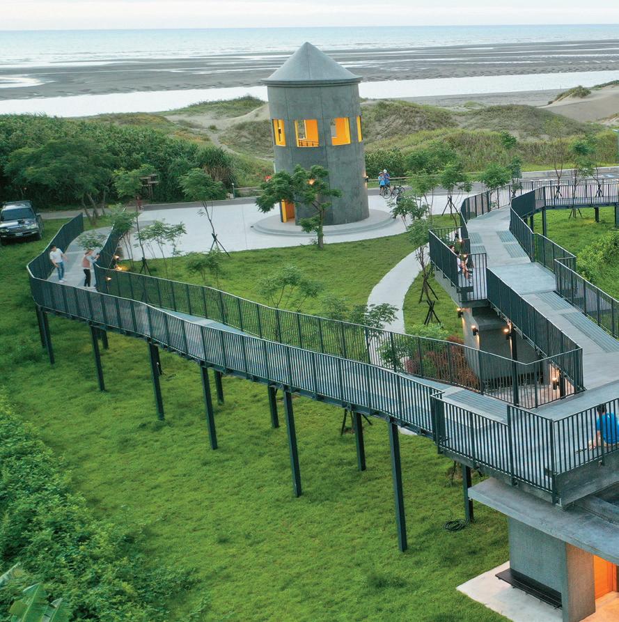 林區及公園,重新連結兩旁巷弄居民,營造出大 街串小巷的生活感;在南寮漁港被稱為「肉粽」 的消波塊經過重新設計開模,成功打造出全台僅 有的「魚鱗天梯」。