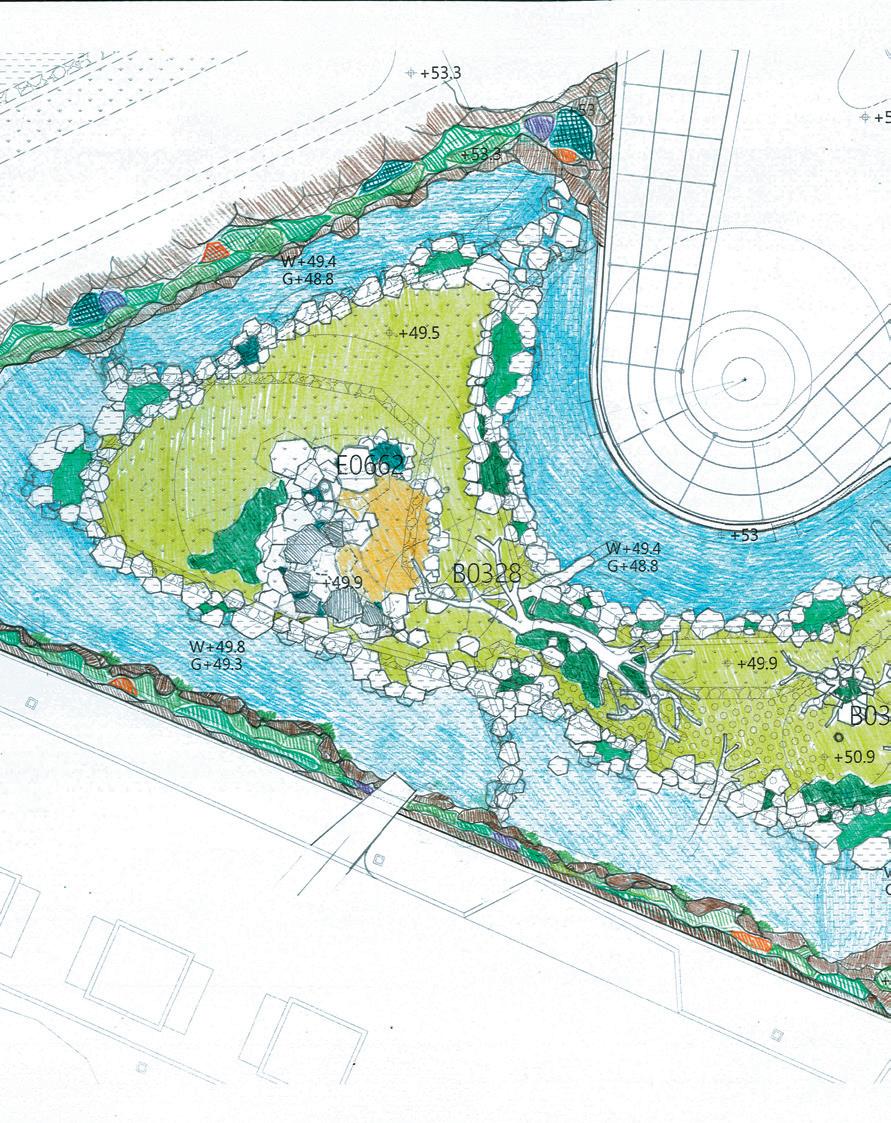 規劃設計: 中冶環境造形顧問有限公司 / 不自限於景觀領域,而將對自然環境的關懷,對 人文歷史的熱情,對生活環境的責任與環境美學 結合起來,依據感性、美學修養,以及對生命環 境的價值觀,不拘一格,規劃設計符合生態倫理 且感動人心的案例。 d 157 SCENE III 微笑水岸 讓地、讓道、克己與共享